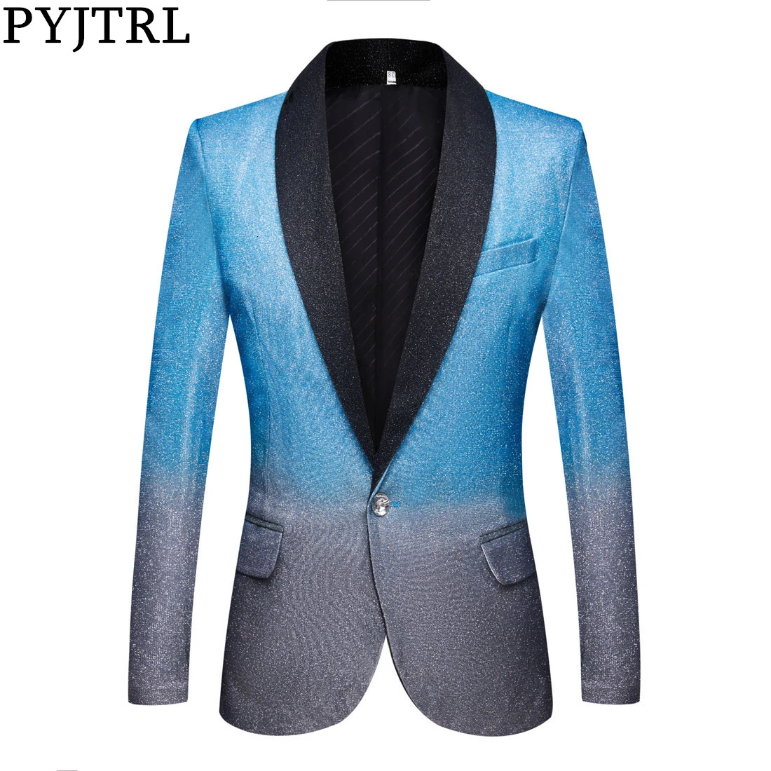 Новинка, Мужской Блейзер PYJTRL небесно-голубого цвета с градиентом, блейзер для ночного клуба, сцены, певицы, выпускного вечера, костюм, куртка, свадебный костюм