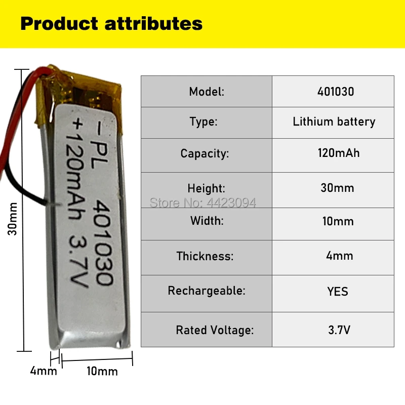 3.7V 120mAh 401030 Lithium Polymer Li-Po li ion Rechargeable Battery For MP3 MP4 MP5 GPS DVD tablet Bluetooth camera Lipo cell