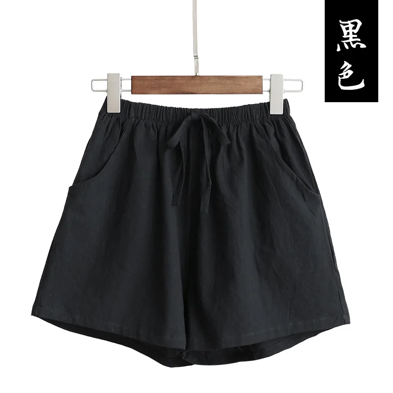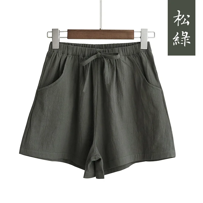 Шорты женские из 2021 хлопка и льна, штаны с высокой эластичной талией, домашние Свободные повседневные с карманами, лето
