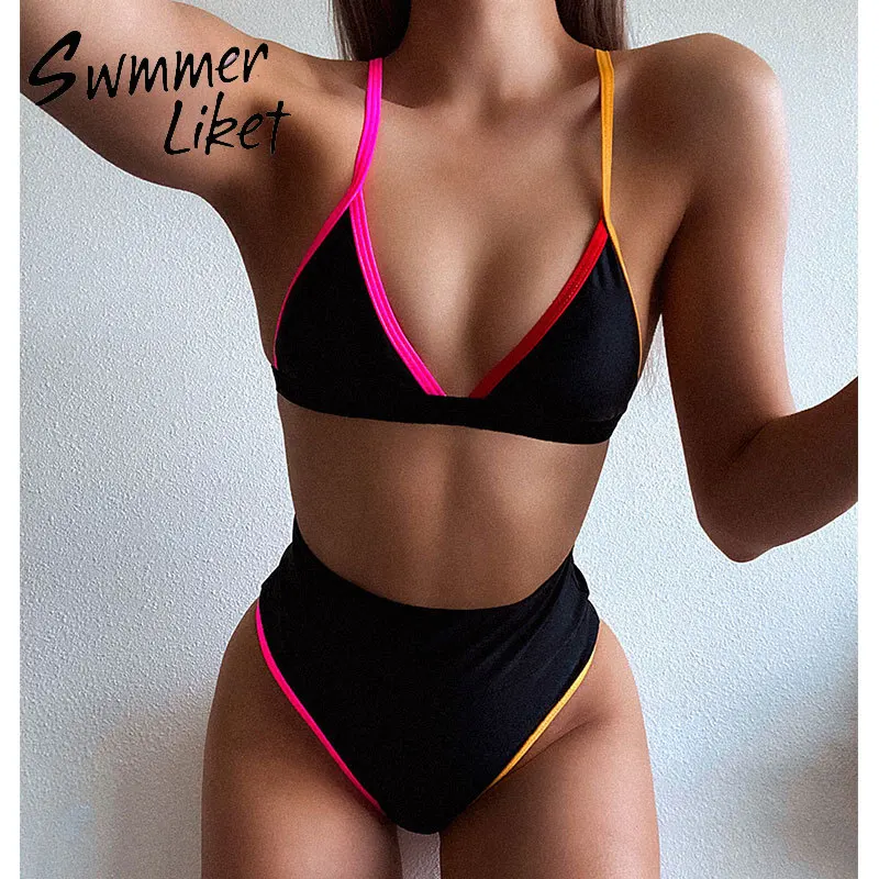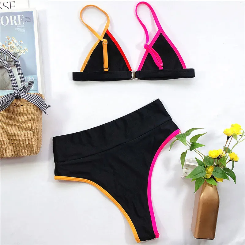 Бикини с высокой талией 2020, женское бикини в стиле пэчворк, треугольный купальник, Женский винтажный купальник, купальный костюм, женские купальники, бикини, Новинка