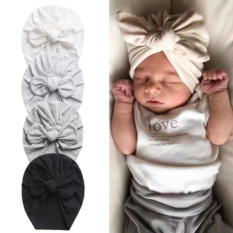 Милая детская шапка с бантом, тюрбан, одноцветная мягкая хлопковая ...