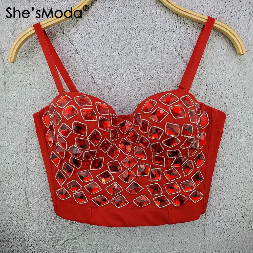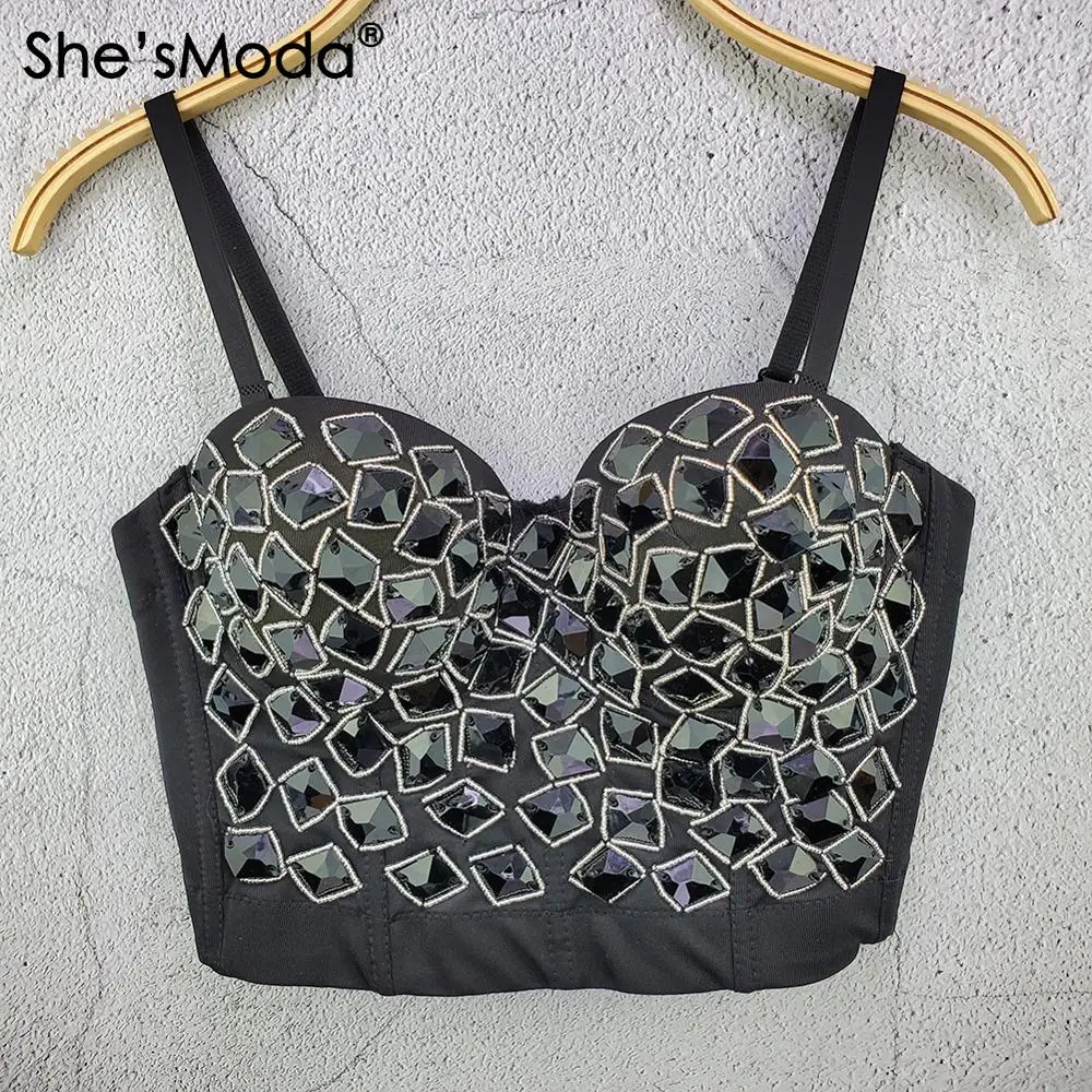 Оригинальный дизайн! Спереди из смесовой хлопковой ткани с заклепками на поверхности. Спинка из гладкого мягкого спандекса. Качественные Стразы ручной работы, тонкая ручная работа. Дизайн пуш-ап, хорошая форма в чашке бюстгальтера, которая подчеркнет вашу сексуальную грудь. Подходит для ночного клуба и для особых случаев. Shing diamond позволит вам выделиться в людном.