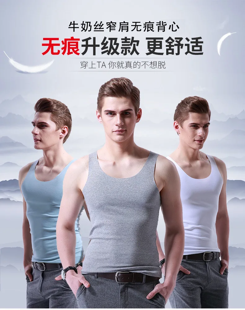 Жилет Мужской Шелковый без следов, приталенный облегающий Топ без рукавов, с открытыми плечами и круглым вырезом, дышащая майка, лето