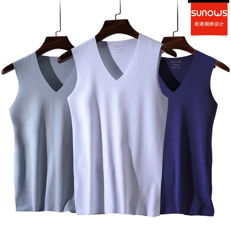 Майка мужская однотонная из ледяного шелка, пикантный жилет без рук...