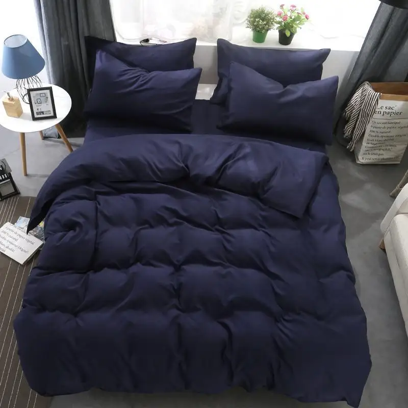 AB сбоку однотонный комплект постельных принадлежностей король, королева полный размер двойной постельное белье, цвет: темно-синий, розовый, 3/4 шт постельное белье для взрослых Комплект постельного белья Плоский лист
