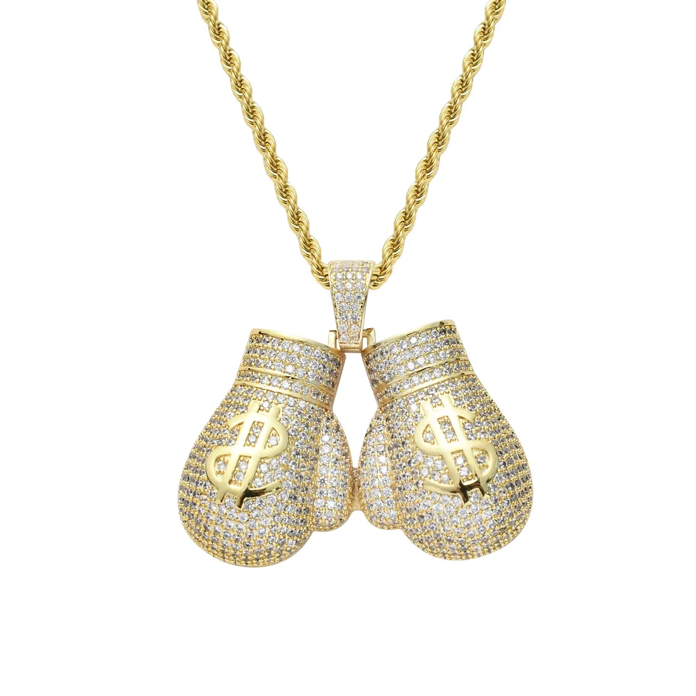 Цепочка с подвеской в виде боксерских перчаток, с фианитом, 4 мм
