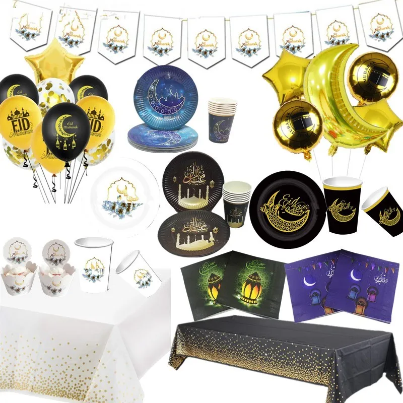 OEING ИД Мубарак бумажные тарелки и стаканы одноразовая посуда исламский мусульманский Рамадан Декор ИД вечерние ужин набор столовых предметов