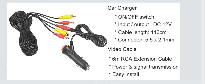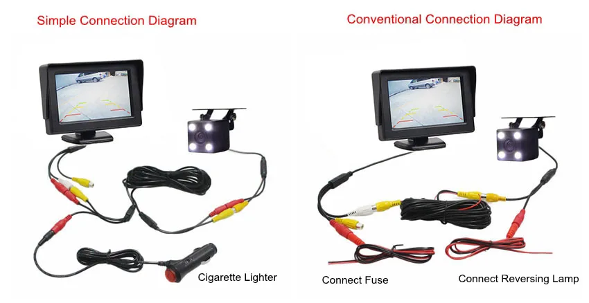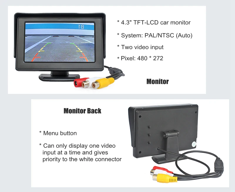 Система помощи при парковке автомобилей DIYKIT, монитор заднего вида 4,3 дюйма + Автомобильная камера заднего вида, резервное зарядное устройство для автомобиля