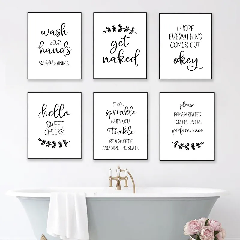 Забавный знак для ванной, Картина на холсте, печать и постеры, Обнаженная черно-белая художественная стена с цитатой, картины, декор для ванной CH114