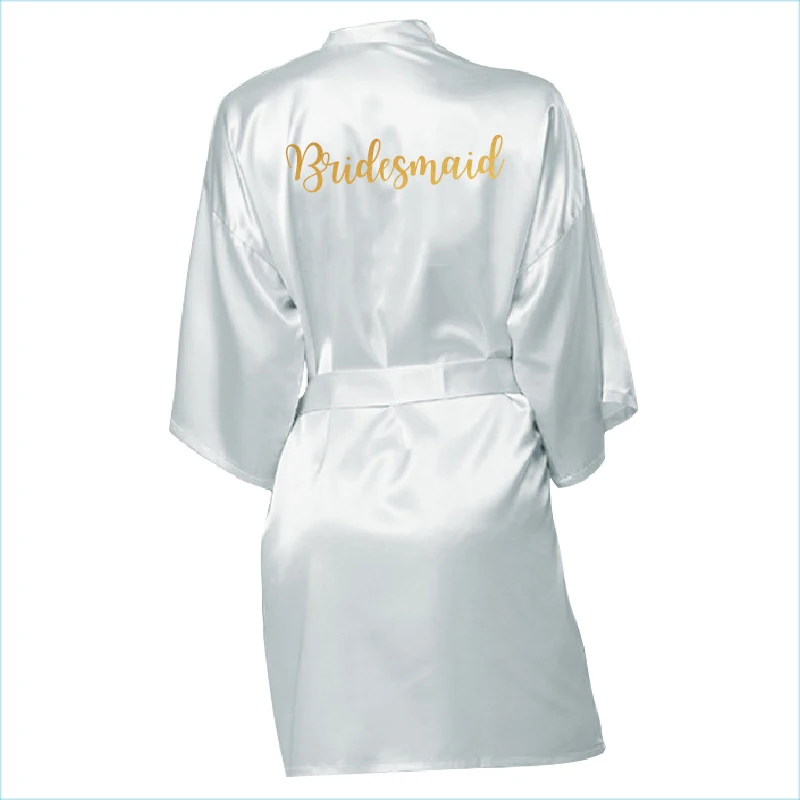 Женский Атласный халат с золотым принтом, кимоно для невесты, подружки невесты