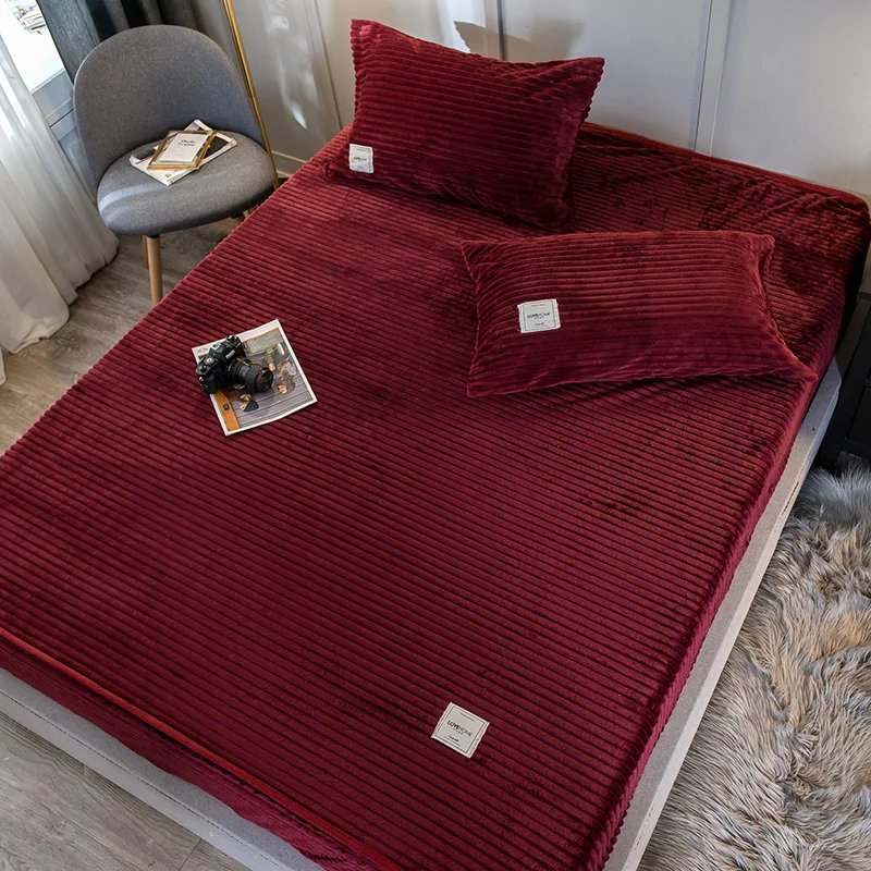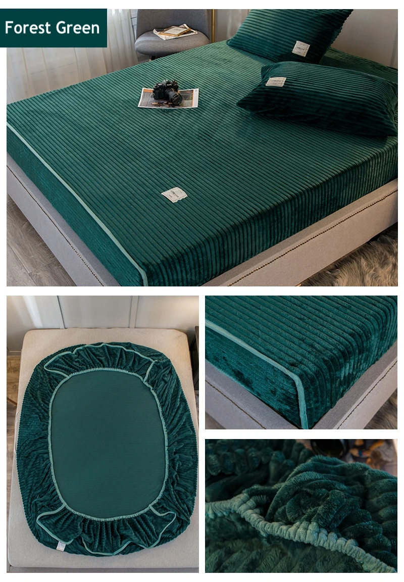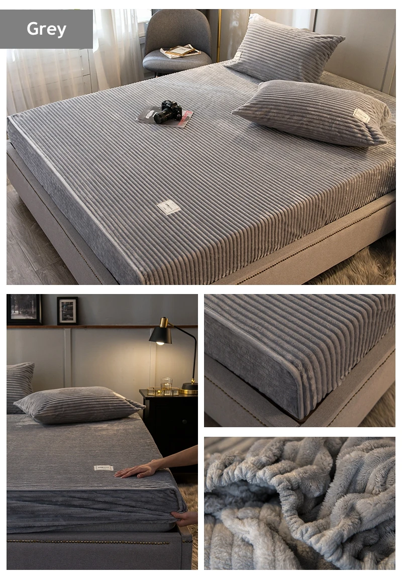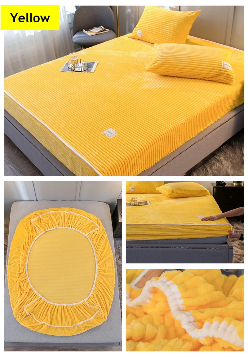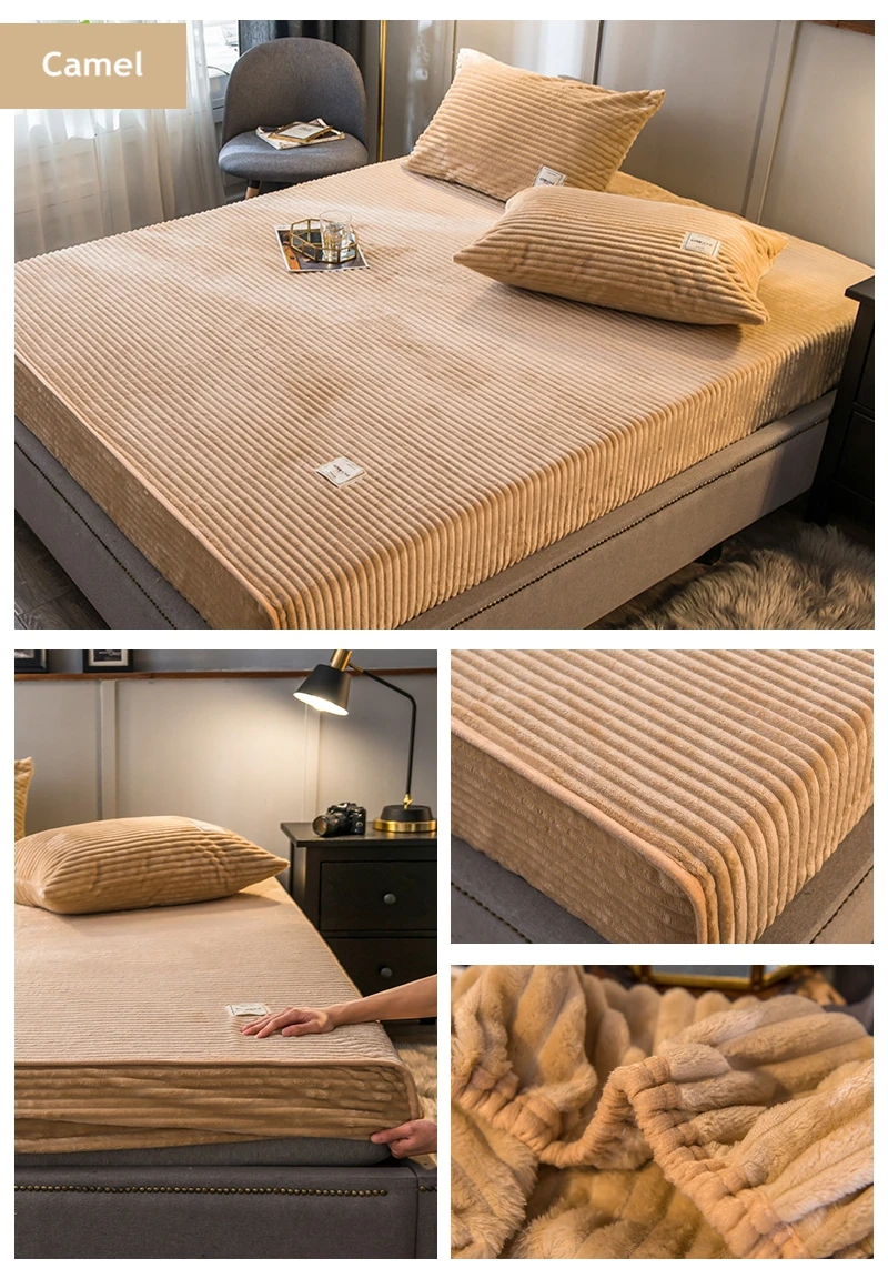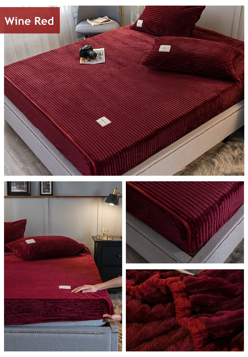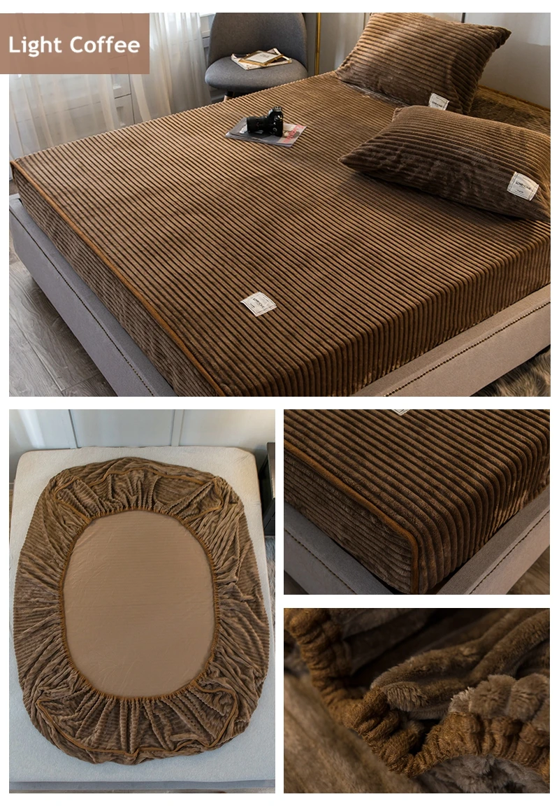 Зимняя простыня, наволочка, мягкая натяжная простыня из кораллового флиса, наматрасник, простыня для кровати, однотонный флисовый эластичный