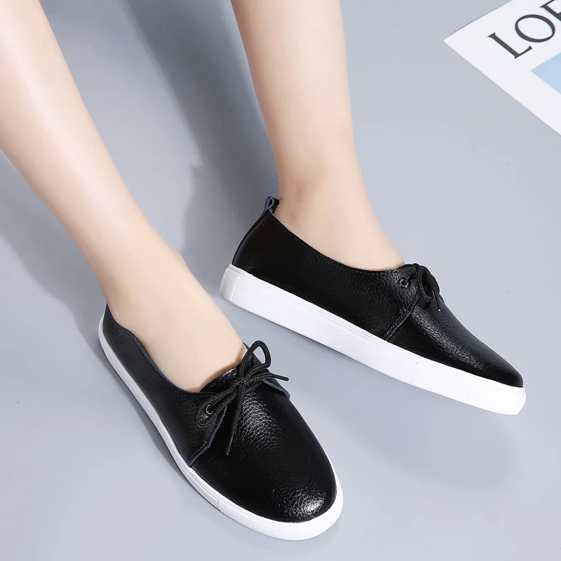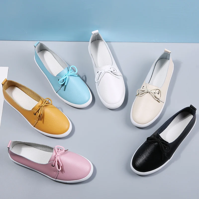 Tilocowженские балетки на шнуровке; Женские лоферы из натуральной кожи; Женская Повседневная летняя обувь для медсестры на плоской подошве