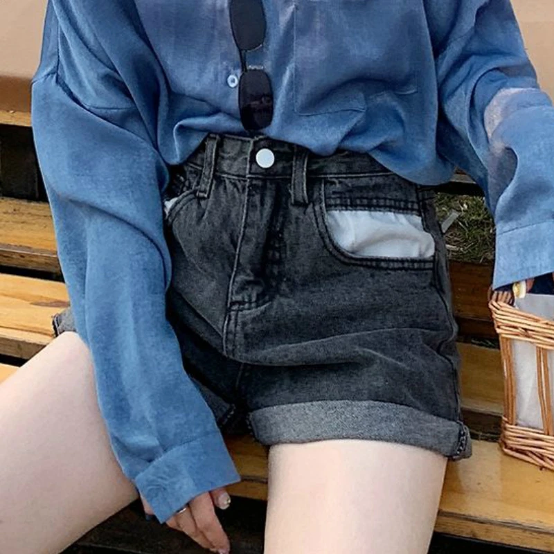 Шорты женские Ulzzang с карманами, трендовые модные джинсовые шорты с завышенной талией, винтажная шикарная уличная одежда для девушек, лето 2020