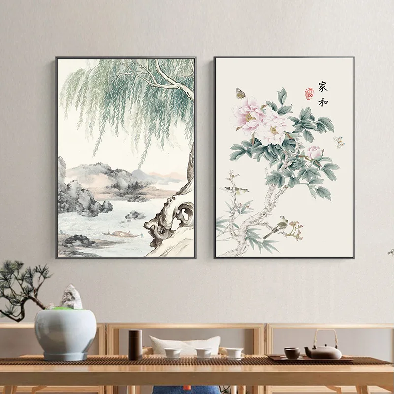 Картина с цветами и птицами в китайском стиле, постеры на холсте дл...