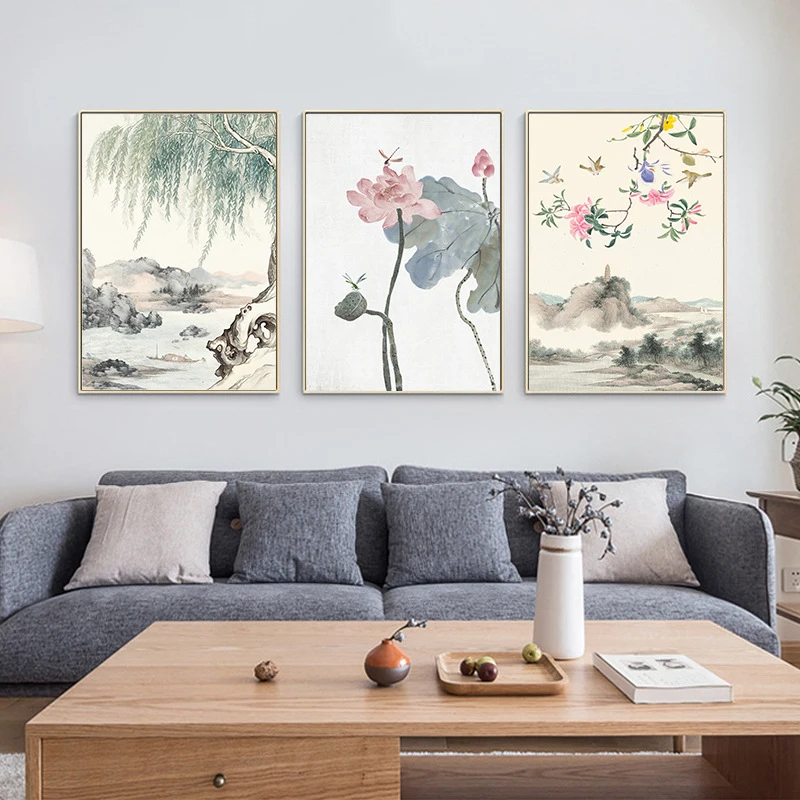 Настенные картины в традиционном китайском стиле, настенные постеры...