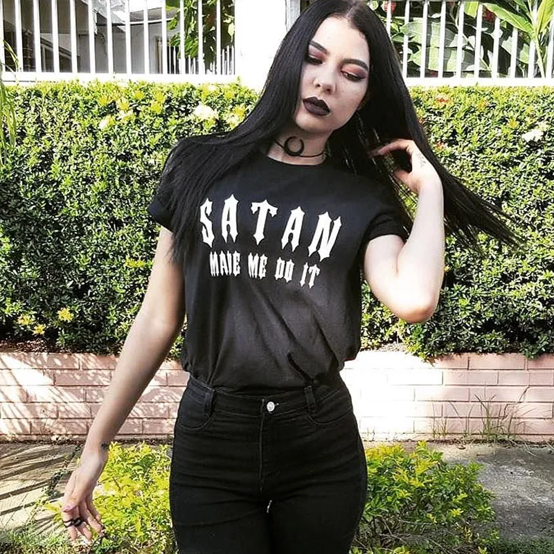 Футболка Satan Made Me Do It с алфавитом в стиле хип-хоп, панк, готика, Harajuku, повседневная, большой размер, повседневная, модная женская футболка с коротким рукавом, Веселый дьявол