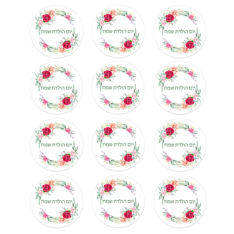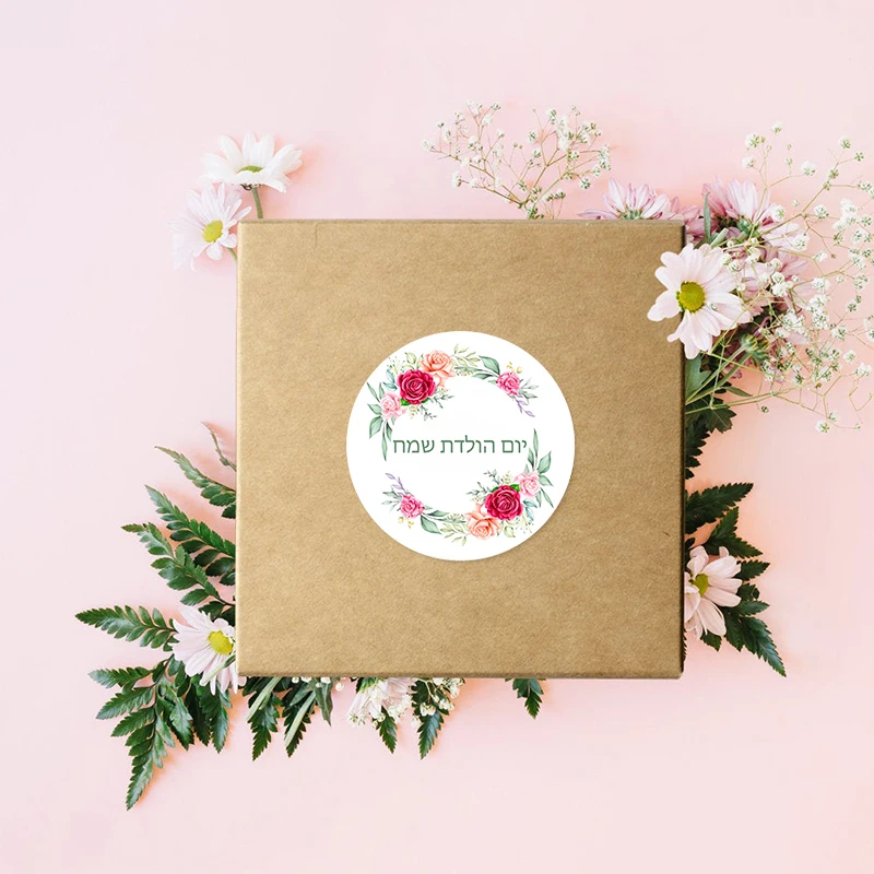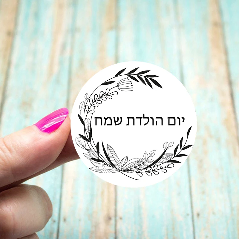 С днем рождения, круглый стикер с надписью на иврите, клейкая бумага, клейкая наклейка, клейкая лента, этикетка для Подарочная выпечка, упаковка для детской вечеринки