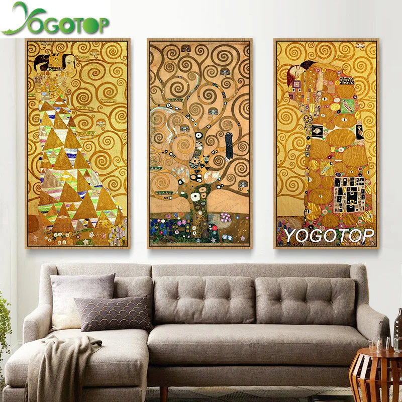 Алмазная вышивка 3 панели Gustav Klimt Kiss life Tree рукоделие, Алмазная мозаика живопись 5D домашний декор полный пазл Триптих ML1281
