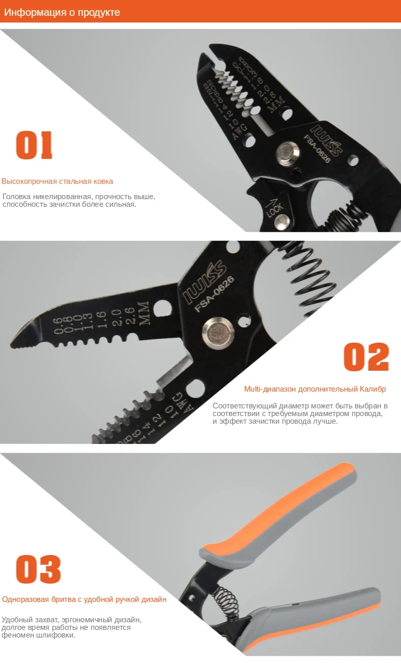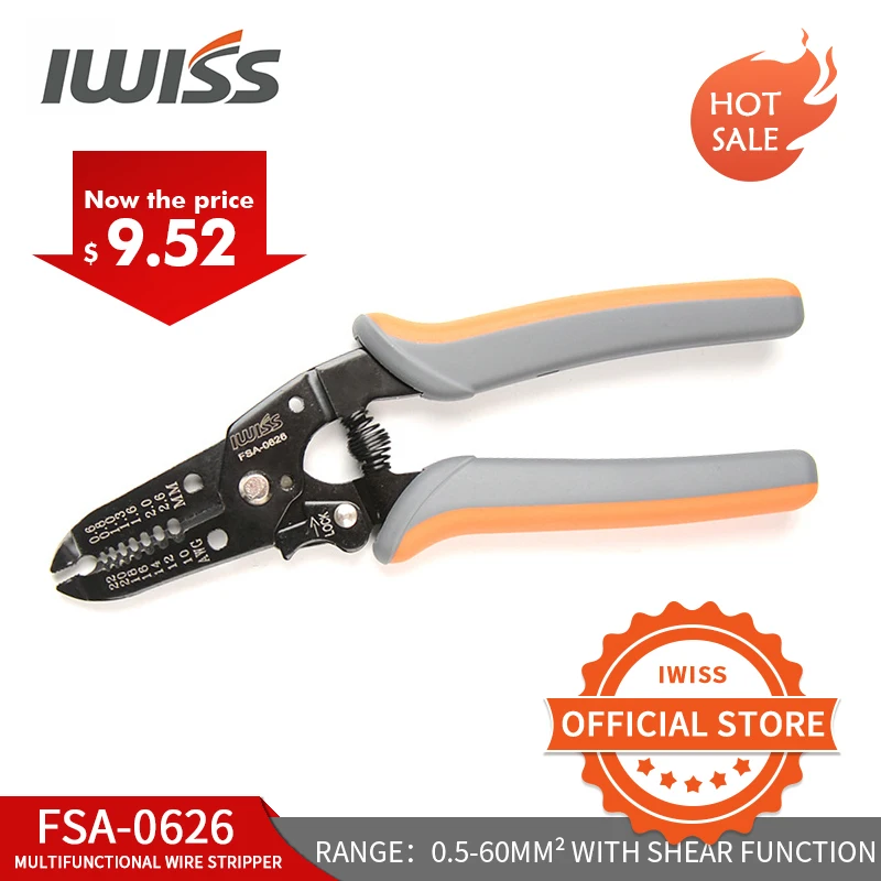 Многофункциональные плоскогубцы для зачистки проводов IWISS FSA-0626 с резаком для кабеля 0.6-2,6 мм (20-10AMG)