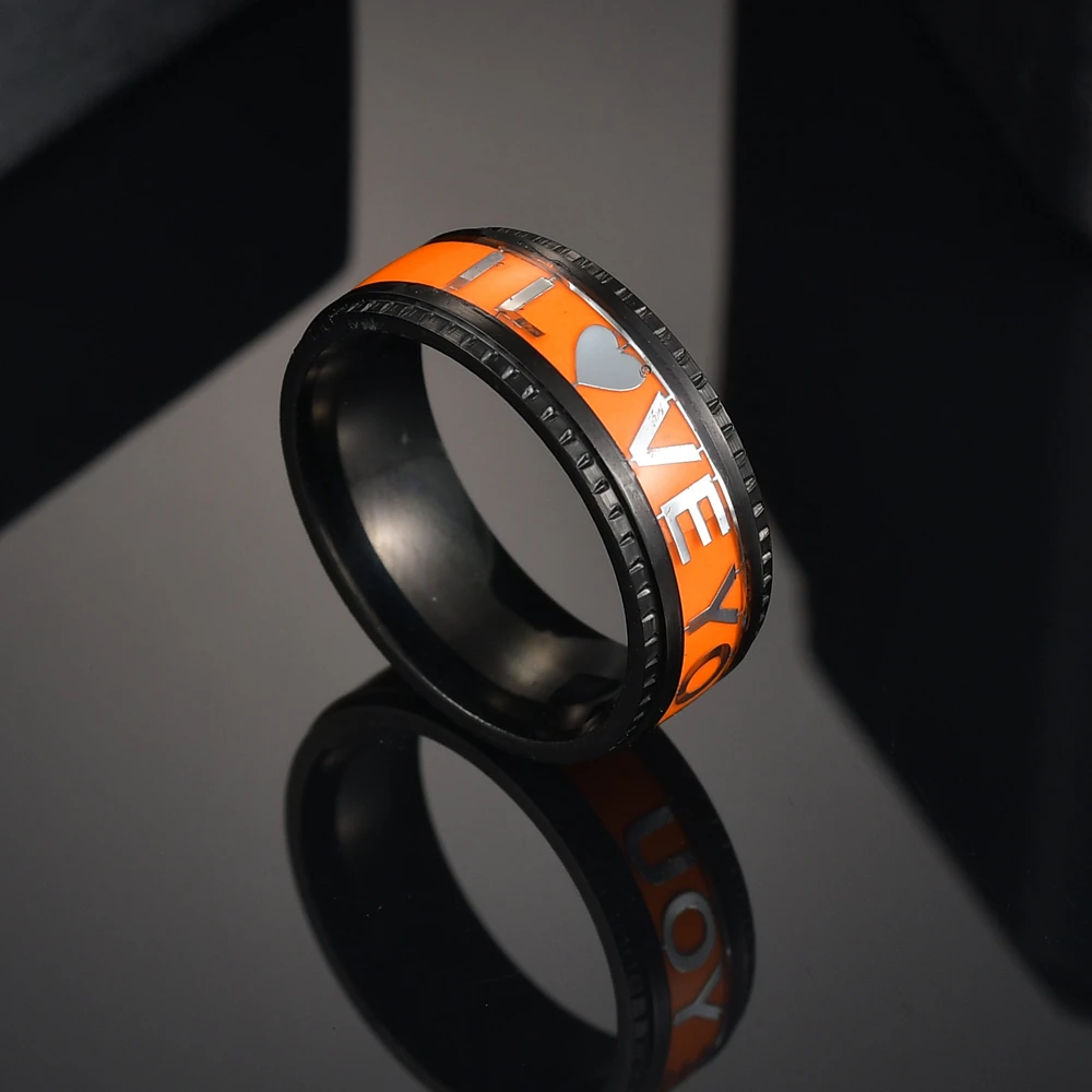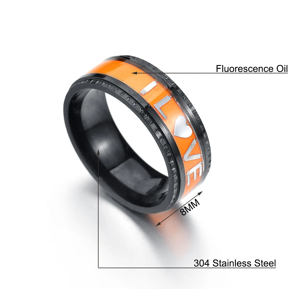 Модные светящиеся черные кольца с надписью Love для мужчин и женщин, светящиеся в темноте, модные мужские флуоресцентные светящиеся кольца, женская бижутерия, размер 13