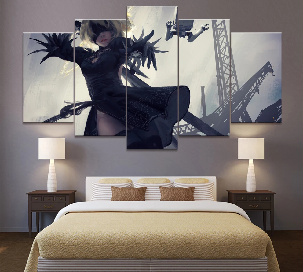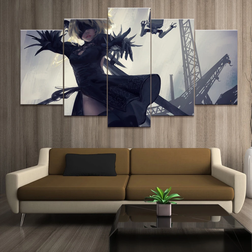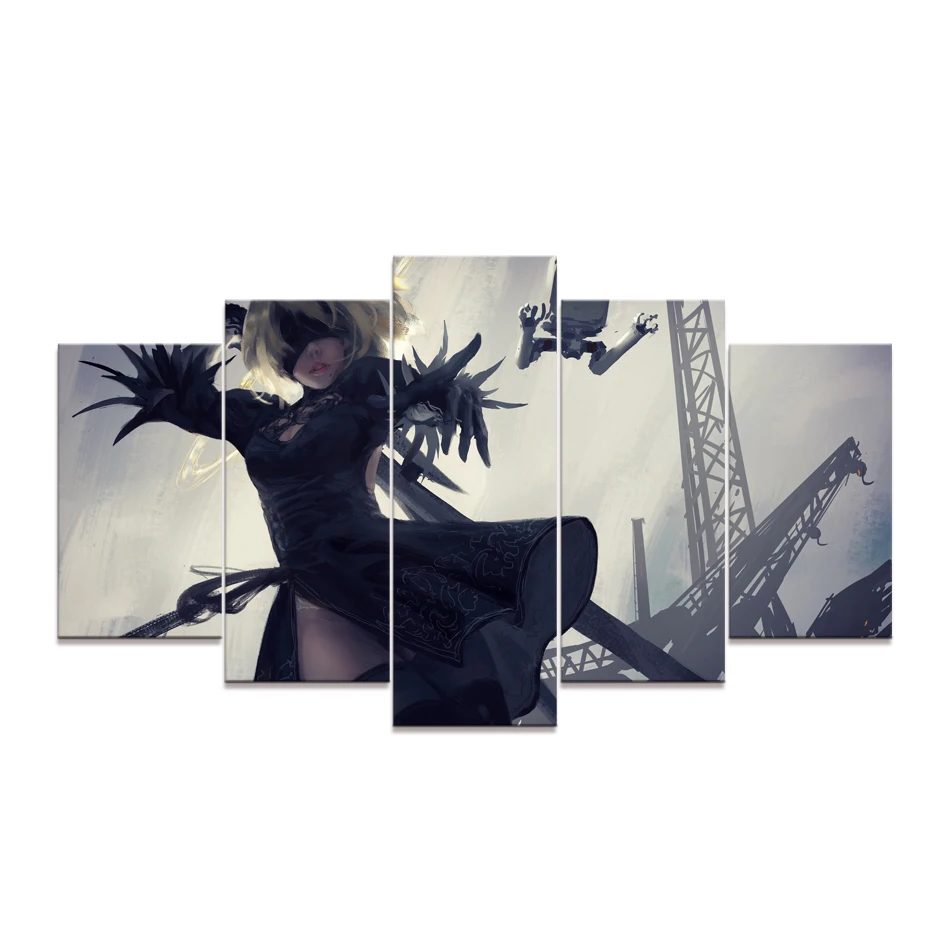 5 шт., Мультяшные картинки, художественные работы, игры NieR: автоматические игры, художественные плакаты, постеры, холст для домашнего декора, стены