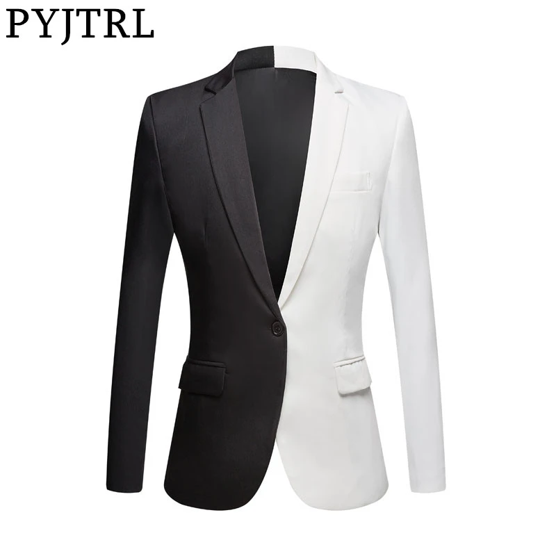 PYJTRL Новая мода Белый Черный Красный повседневное пальто мужские блейзеры для сцены Блейзер приталенный костюм для вечеринки выпускного пиджак