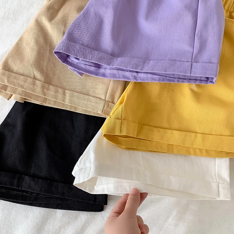 Летние повседневные женские шорты с карманами, на пуговицах, с подворотом, новинка 2020, корейские эластичные шорты, свободные широкие шорты с высокой талией для женщин
