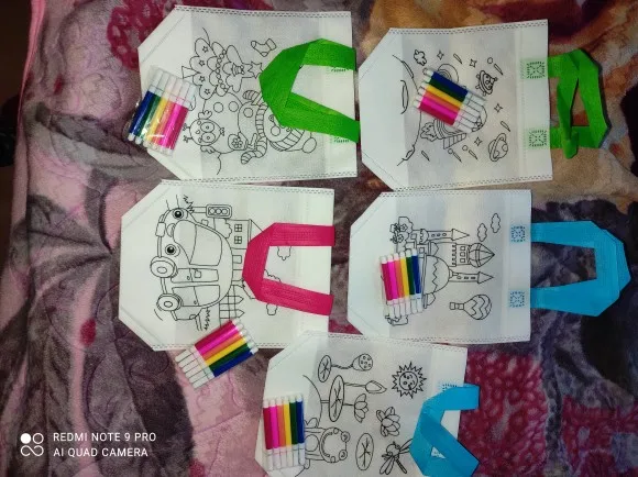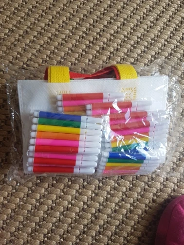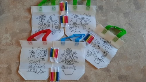 Полностью соответствует описанию и фото. Пять сумочек и пять наборов фломастеров. Рисуют хорошо. Нам понравилось. Рекомендую.