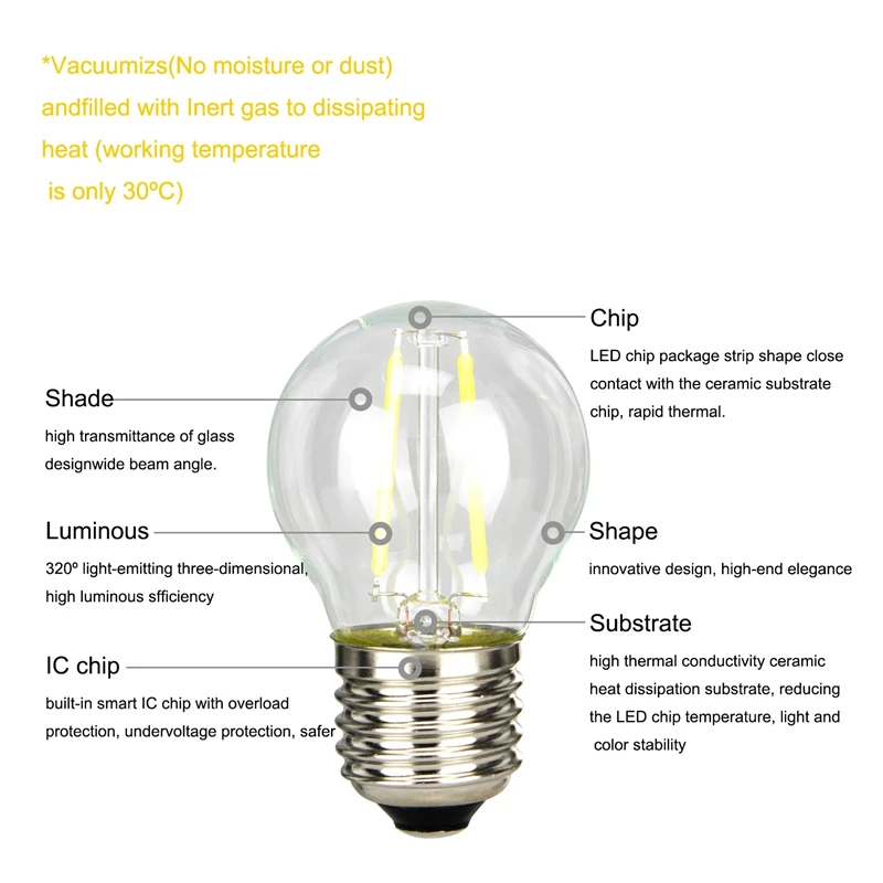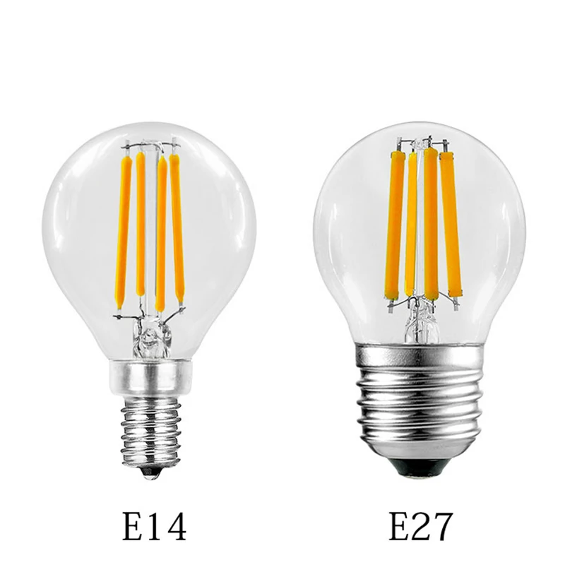 6 шт.лот, 4 Вт, 8 Вт, 12 Вт, E27, E14, прозрачная Светодиодная лампа 220 В, G45, светодиодная лампа с теплымхолодным белым филаментом, Эдисона, шаровой шар, энергосберегающая лампа