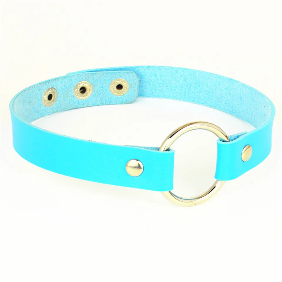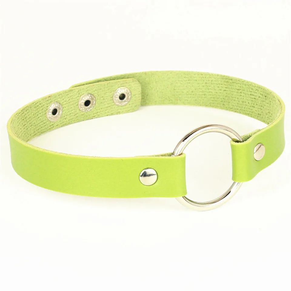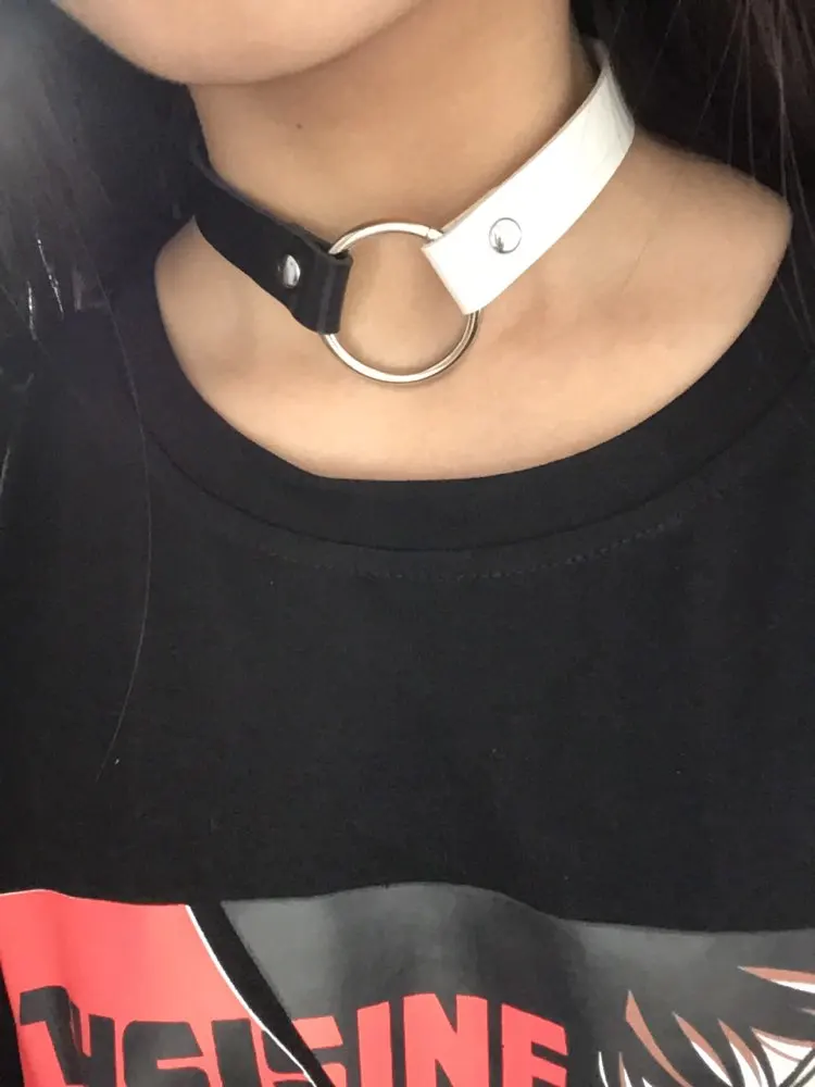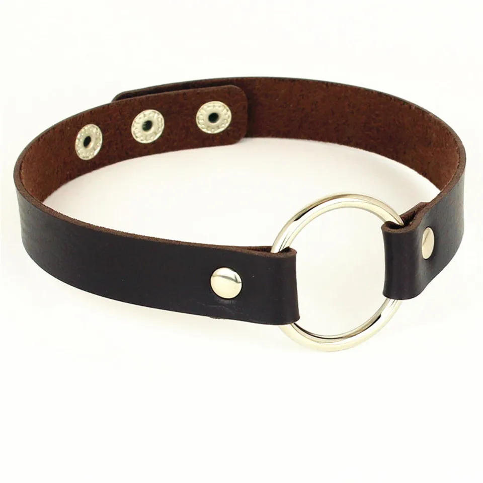 Новая мода Женщины Мужчины Прохладный Punk Goth Черный Круглый Форма кожа Воротник Choker ожерелье ювелирных изделий Аксессуары