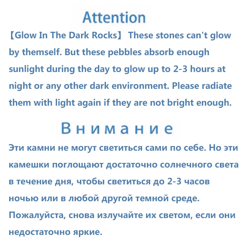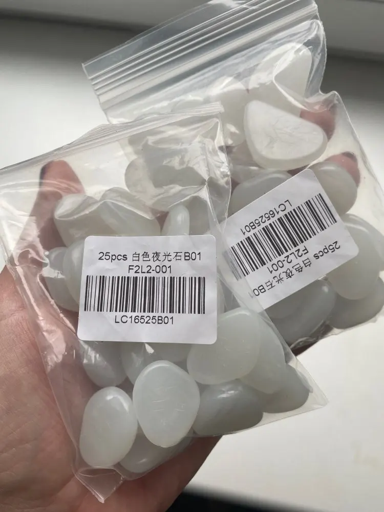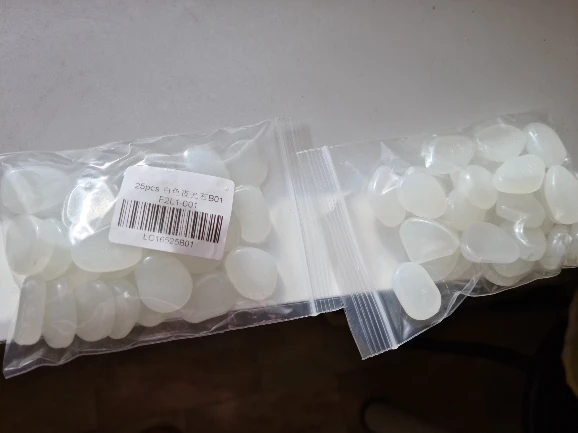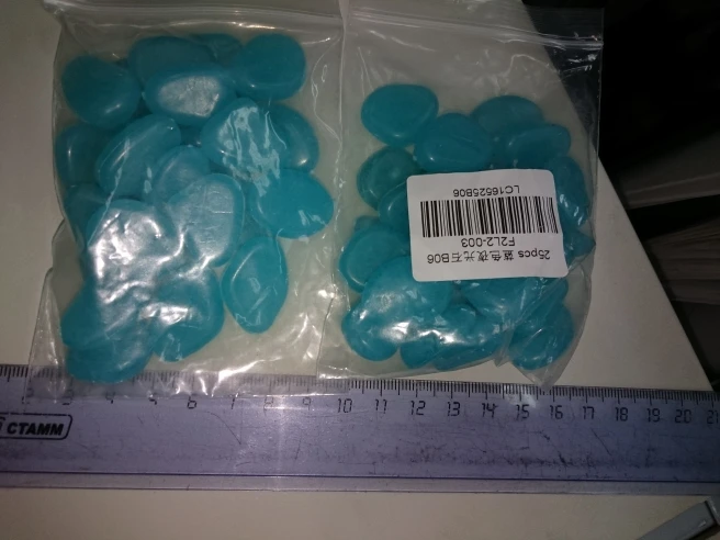 доставка месяц. в темноте светятся хорошо, они не чисто белые, скорее сероватые, размер ожидала чуть больше и дороговато конечно. но главное что эффект есть в темноте, заказала ещё 50 штук, как раз хватит для клумбы, если положить их на белый декоративный щебень в клумбу, днем их не заметно,а ночью будут светится. Вобщем я довольна