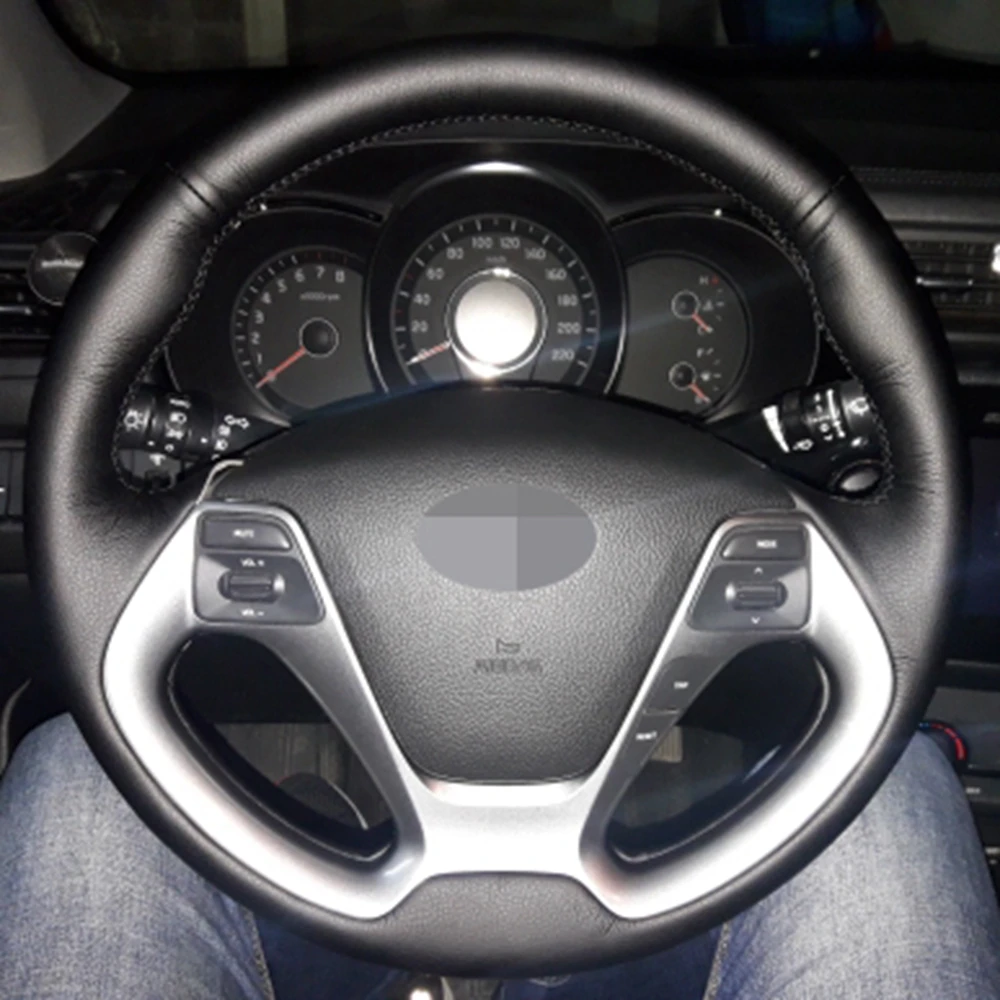 Чехол рулевого колеса автомобиля черная натуральная кожа для Kia K3 2013 K3S 2014 K2 Rio 2015 2016 Ceed 2012-2017 Cerato 2013-2017