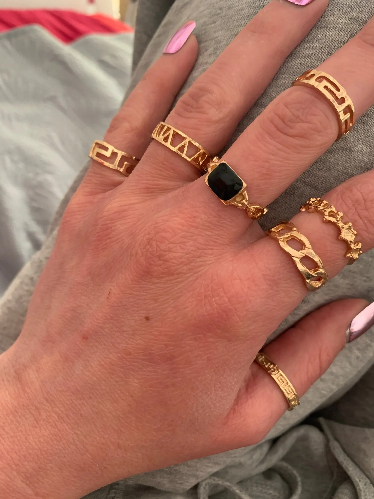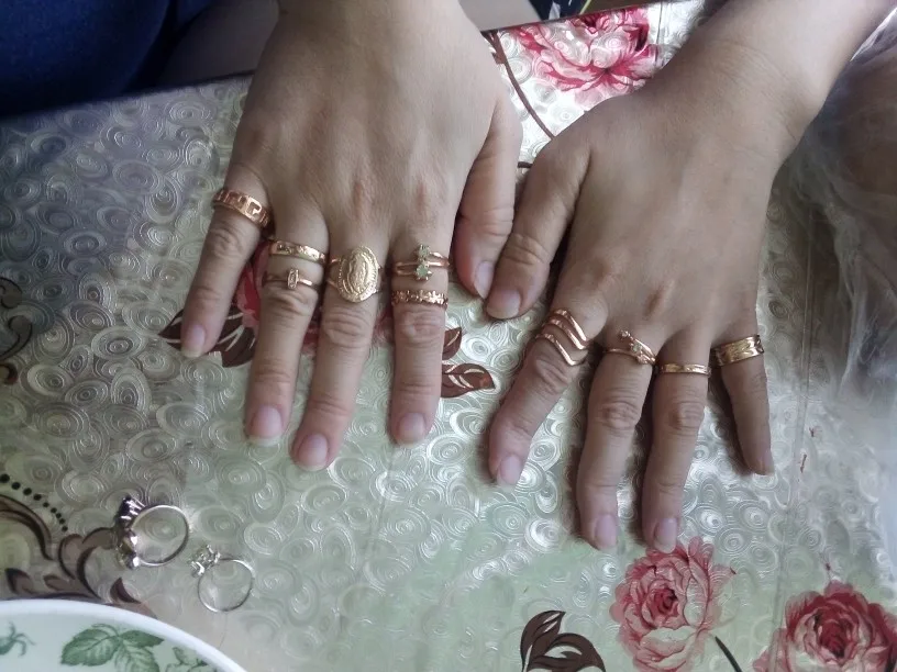 Большинство колец на большие размеры, поэтому носить на верхних фолангах как на фото у меня не получится. Жаль. Обработка металла очень грубая