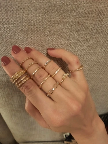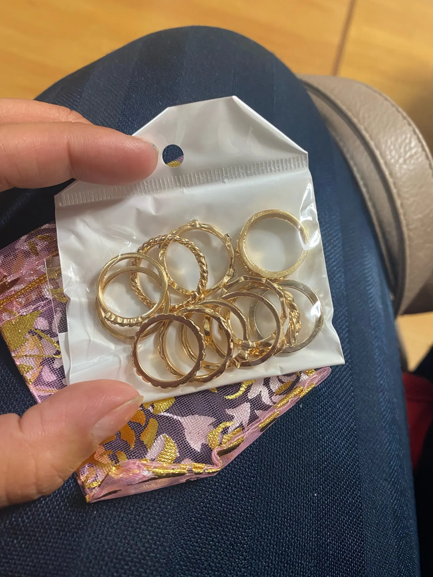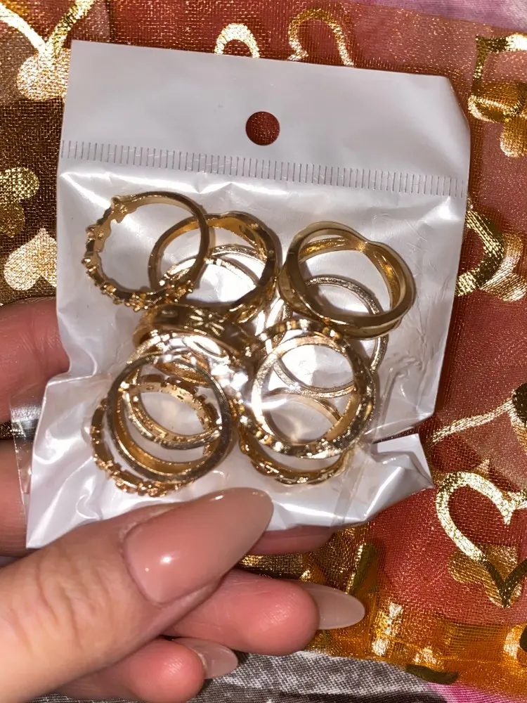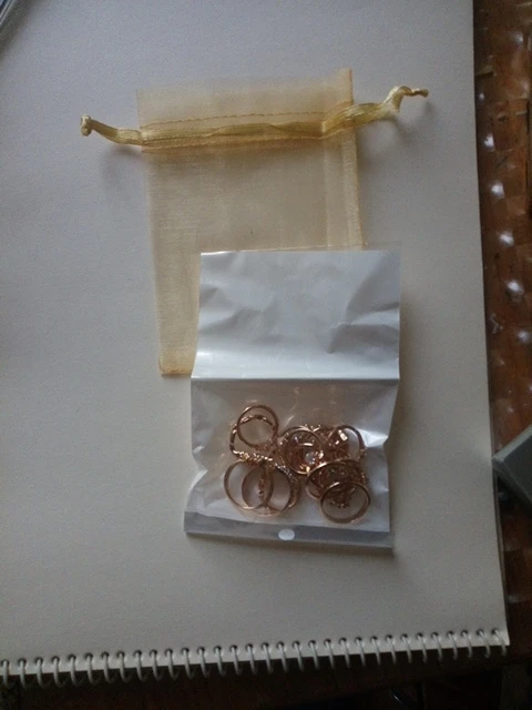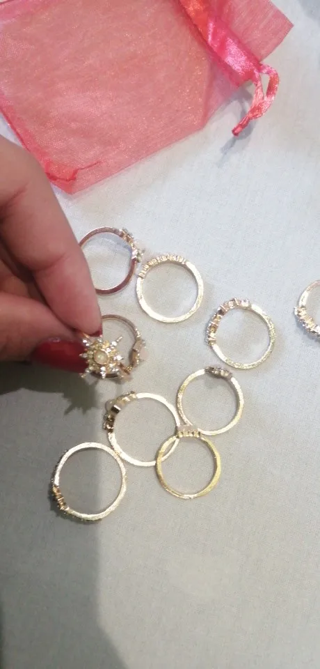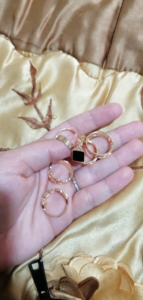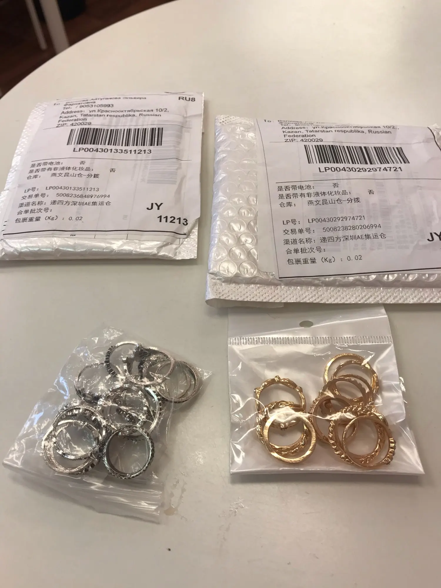 Колечки очень понравились. Доставка месяц. Есть мешочек для них в комплекте. Качественно сделаны все 10 колец, интересные не повторяются! Правда на тоненькие пальчики великоваты. Брала для фотографий маникюра так что просто офигенно. Очень довольна!