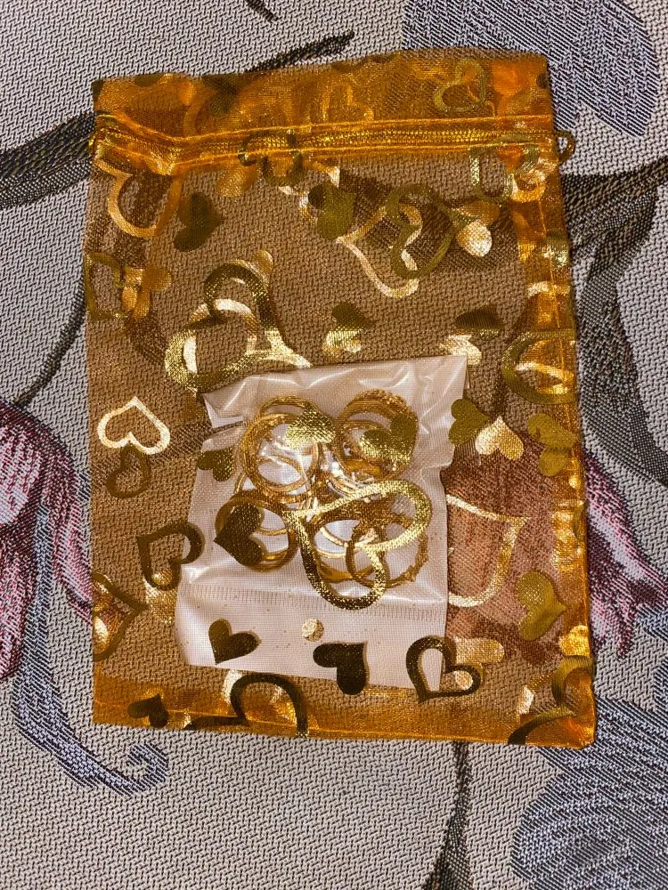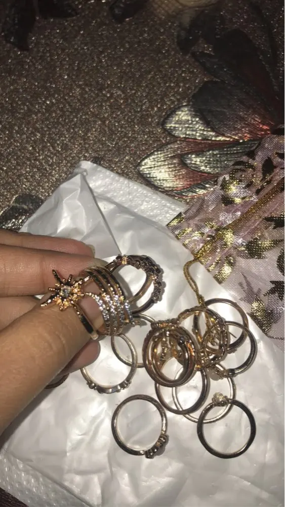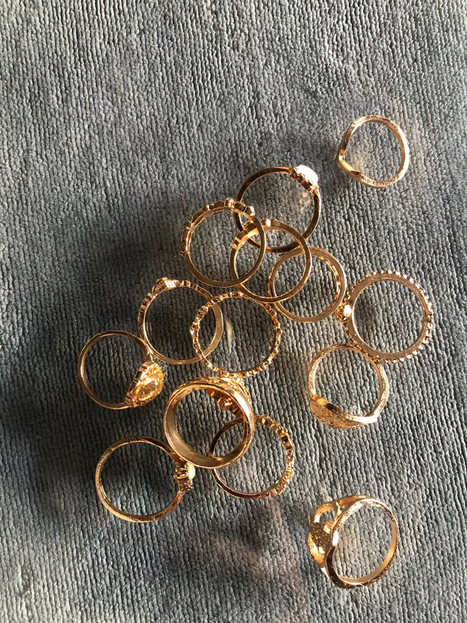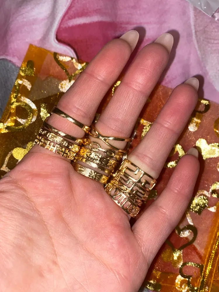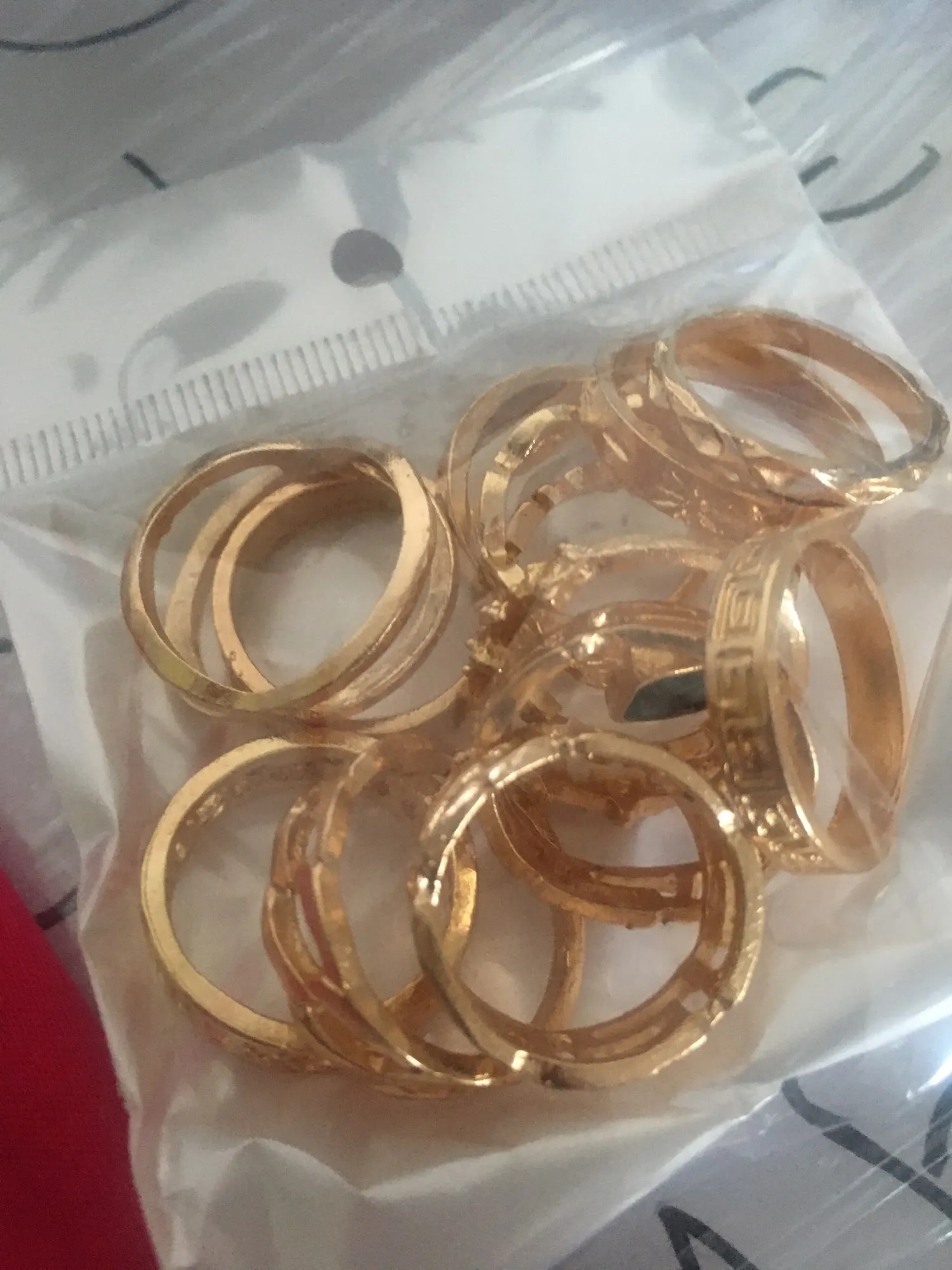 Колечки очень понравились. Доставка месяц. Есть мешочек для них в комплекте. Качественно сделаны все 10 колец, интересные не повторяются! Правда на тоненькие пальчики великоваты. Брала для фотографий маникюра так что просто офигенно. Очень довольна!