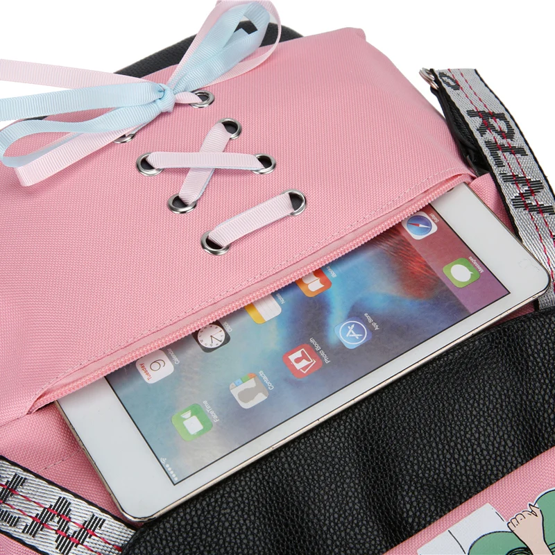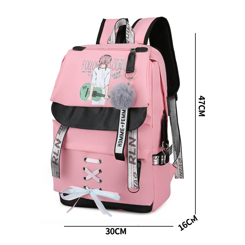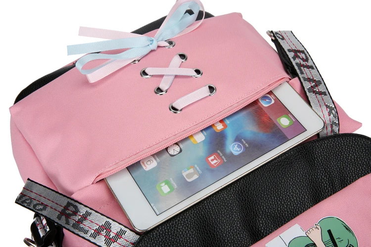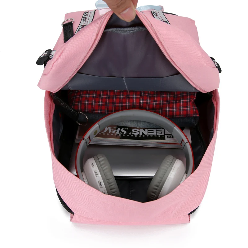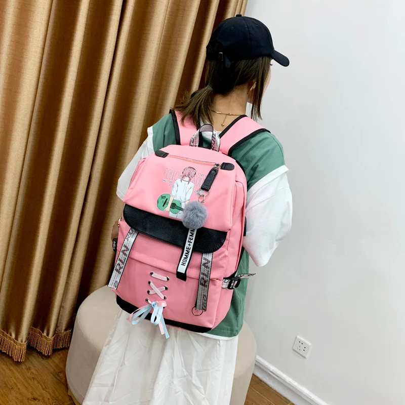 Рюкзак для женщин с USB-принтом, модный школьный ранец для девушек, большой Молодежный милый нейлоновый рюкзак с лентой для колледжа