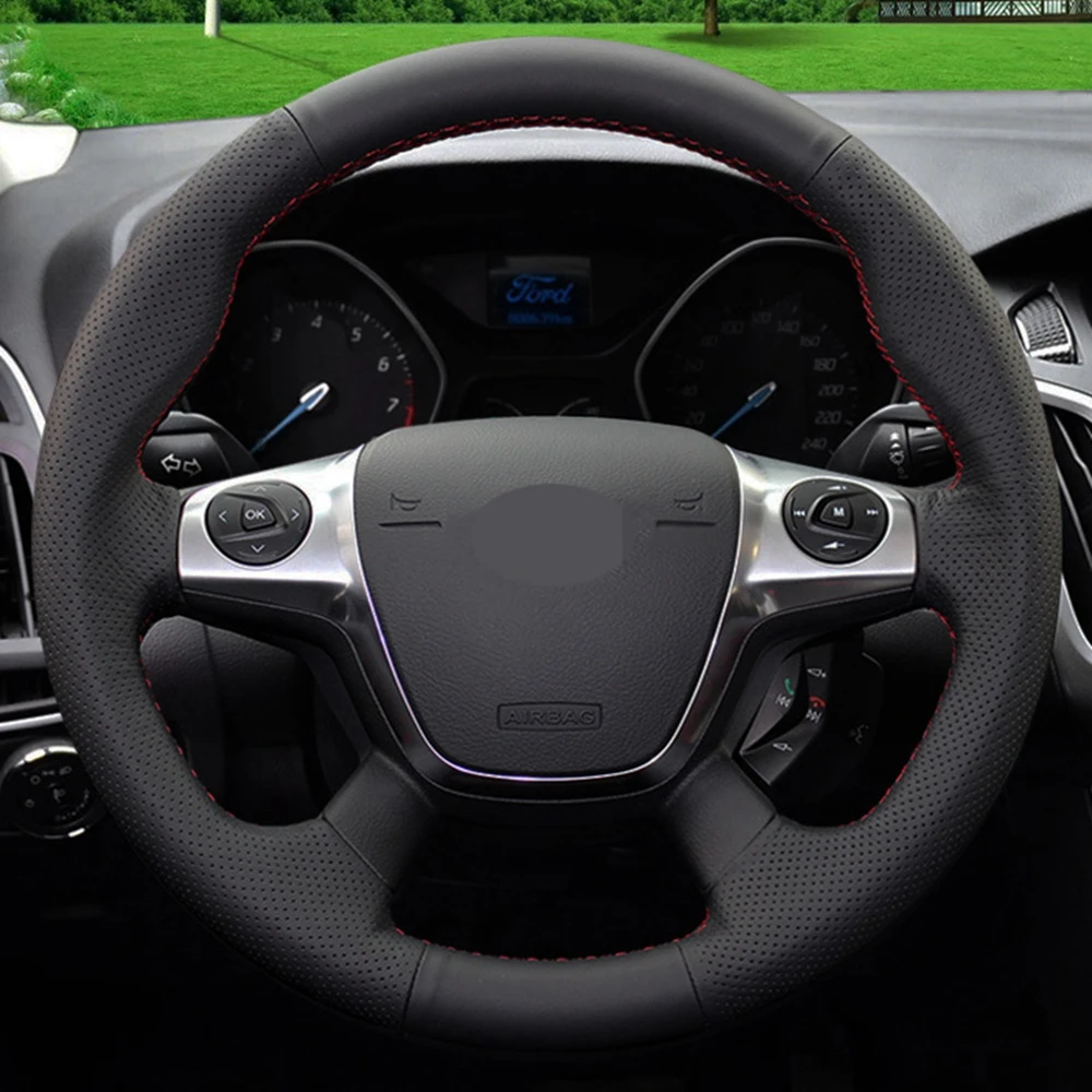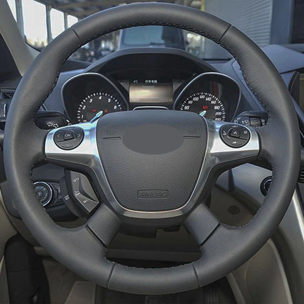 Кожаный чехол ручной работы для Ford Focus 3 Чехол рулевого колеса автомобиля-2012 KUGA Escape 2014-2013, черный, 2016