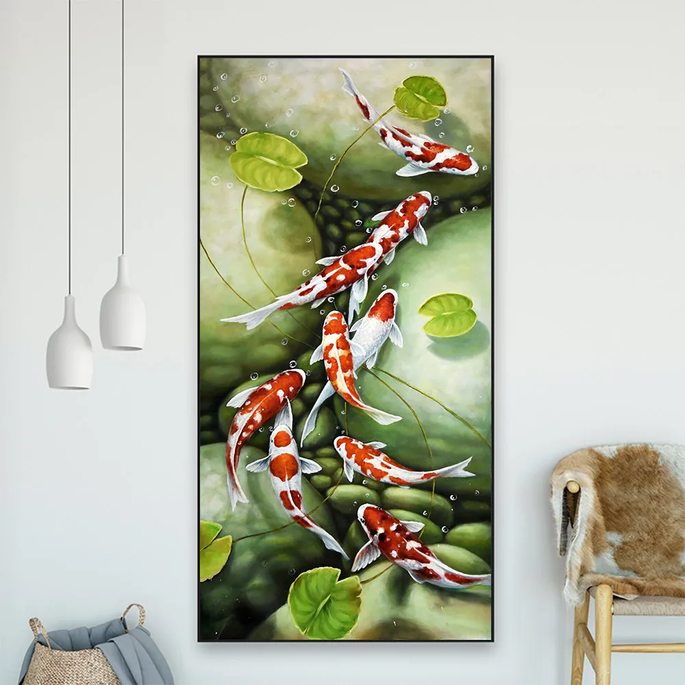 Пруд Карп Алмазная картина животное рыба круглая полная дрель Прихожая Nouveaute DIY мозаика вышивка 5D Вышивка крестом домашний декор