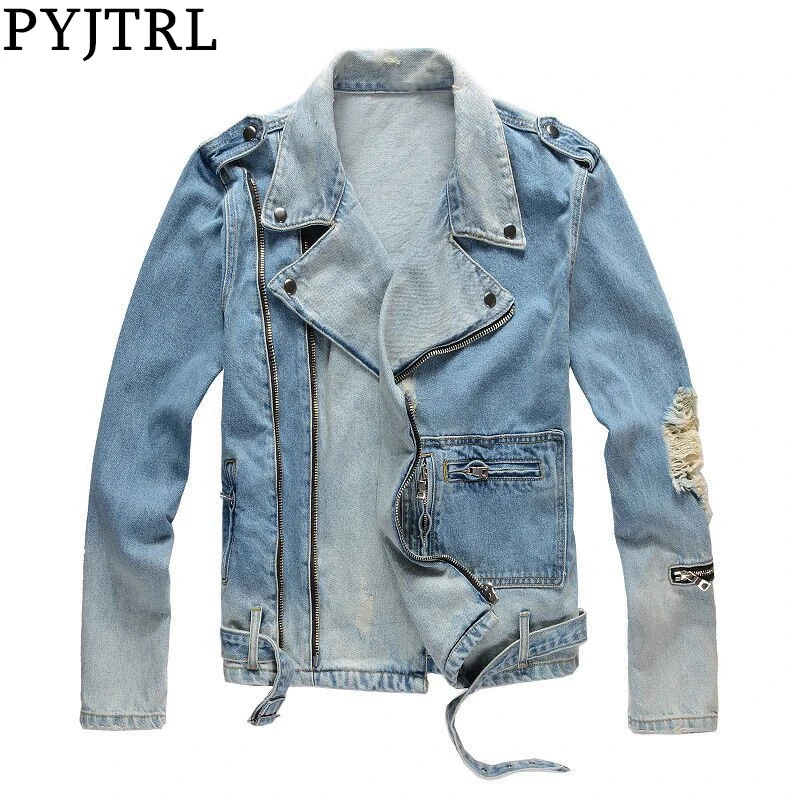 Мужская осенне-зимняя куртка PYJTRL, рваная, светло-голубая