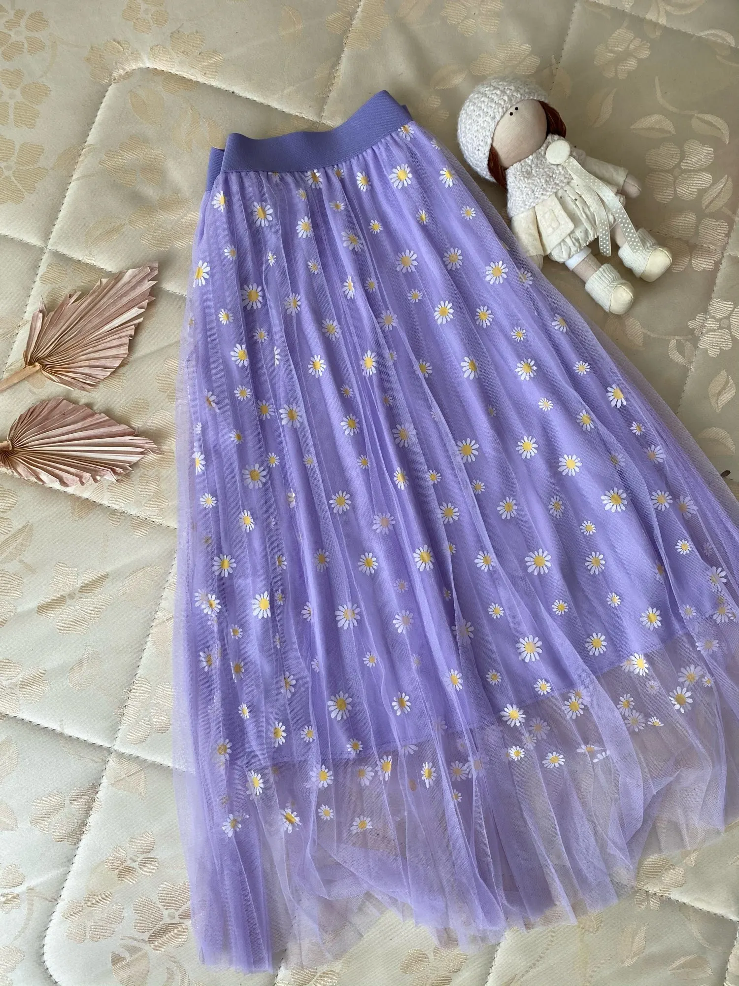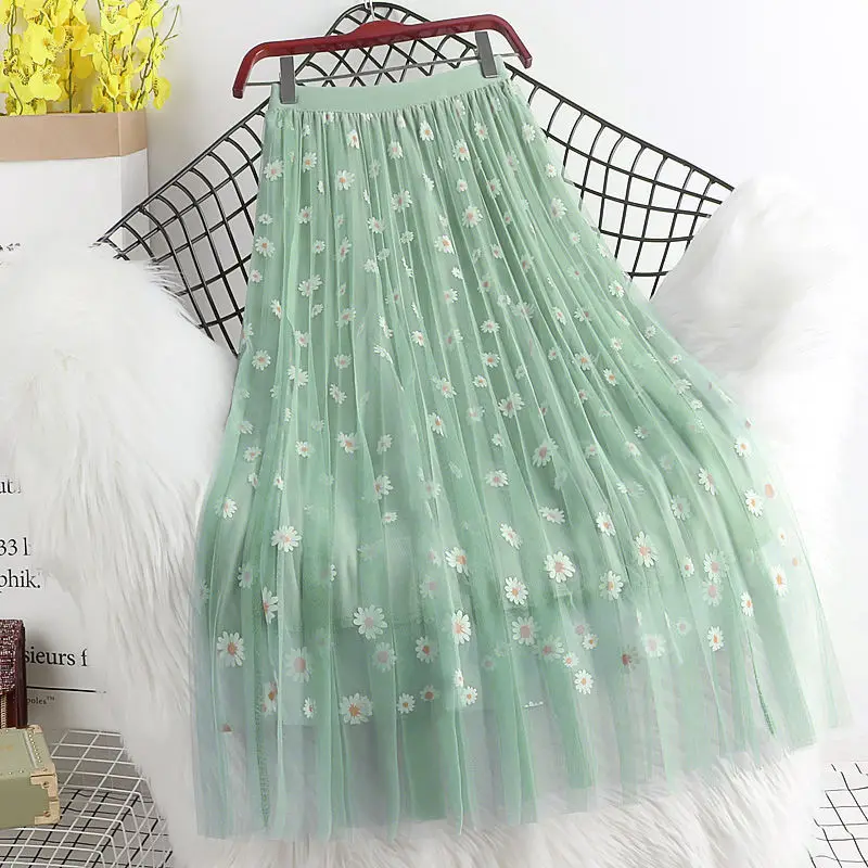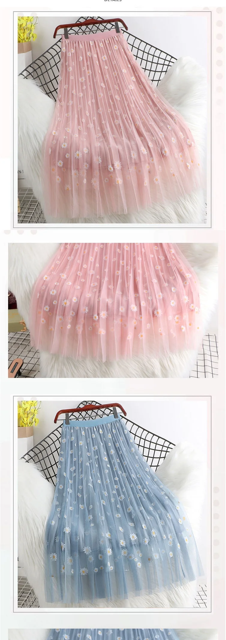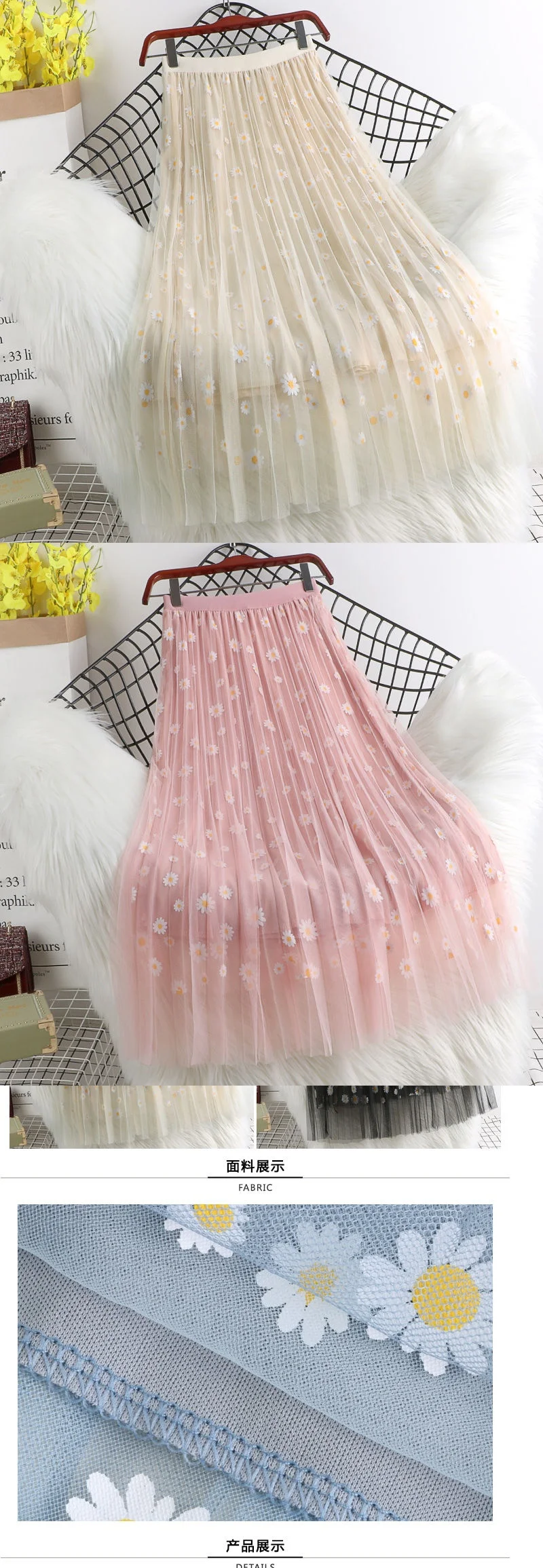 Женская винтажная юбка с высокой талией, плиссированная, летняя, с цветочным принтом, с эластичной талией, длинная юбка из тюля