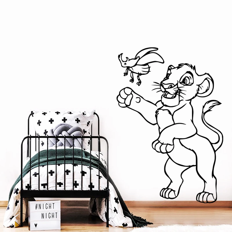 Король Лев Наклейка на стену мультфильм Симба стикер Дети Детская комната украшения для мальчиков Декор Спальни Съемный художественный росписи съемный
