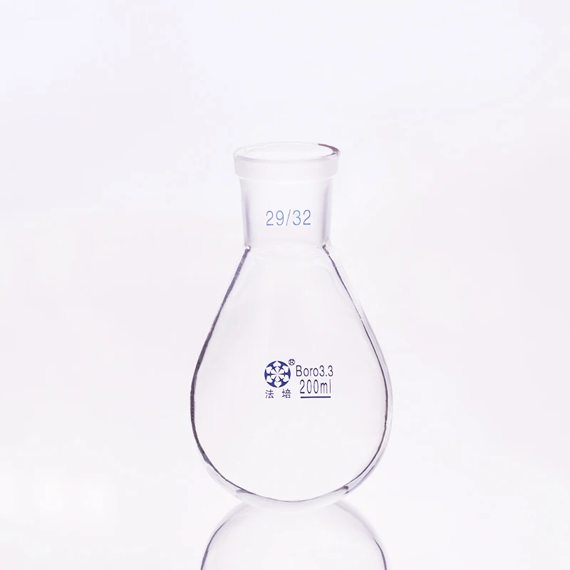 Колба в форме баклажана, стандартное измельчение горлышка с коротким горлышком, емкость 200 мл и соединение 2932, колба в форме баклажана