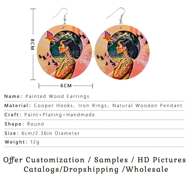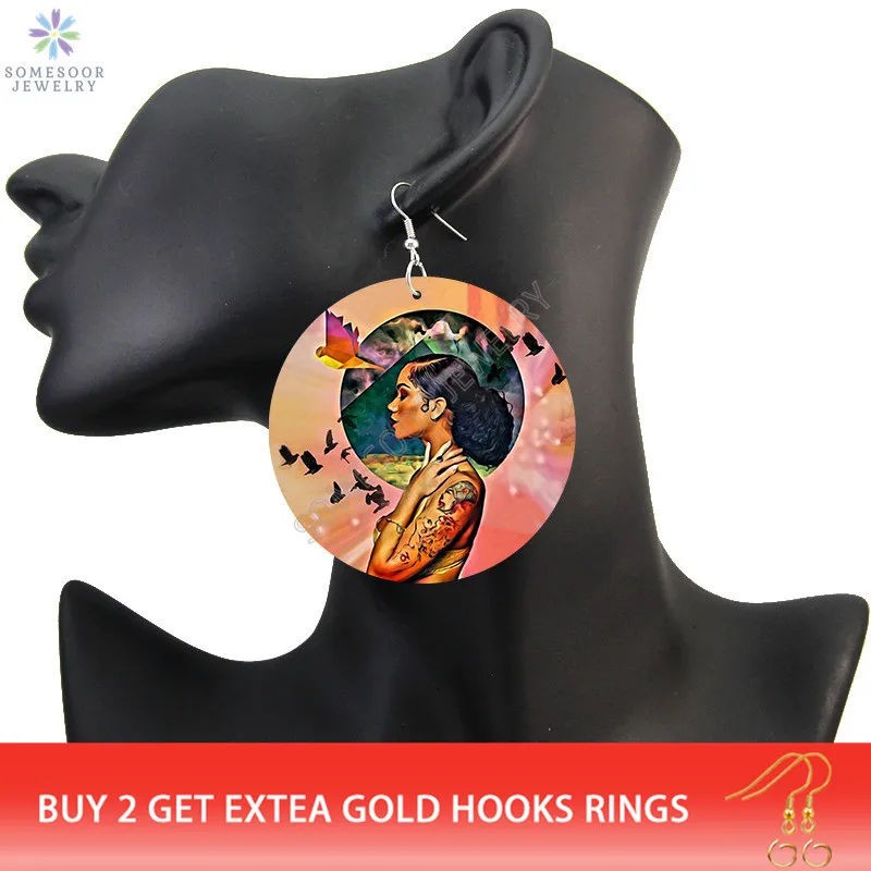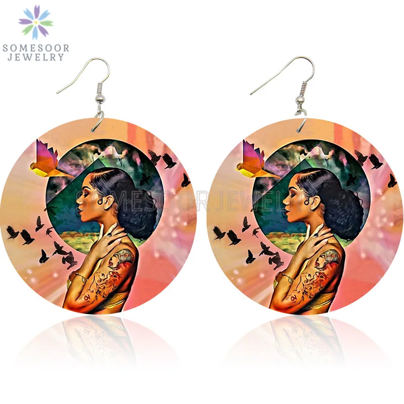 SOMESOOR лазерная гравировка афро деревянные висячие серьги Африкан...