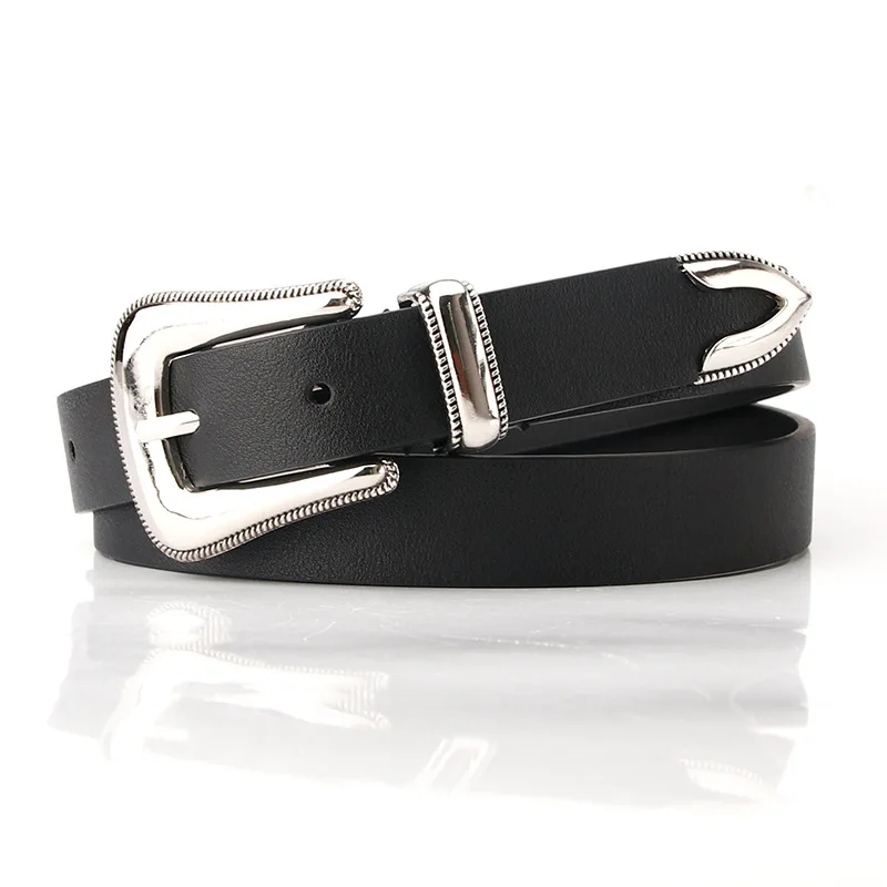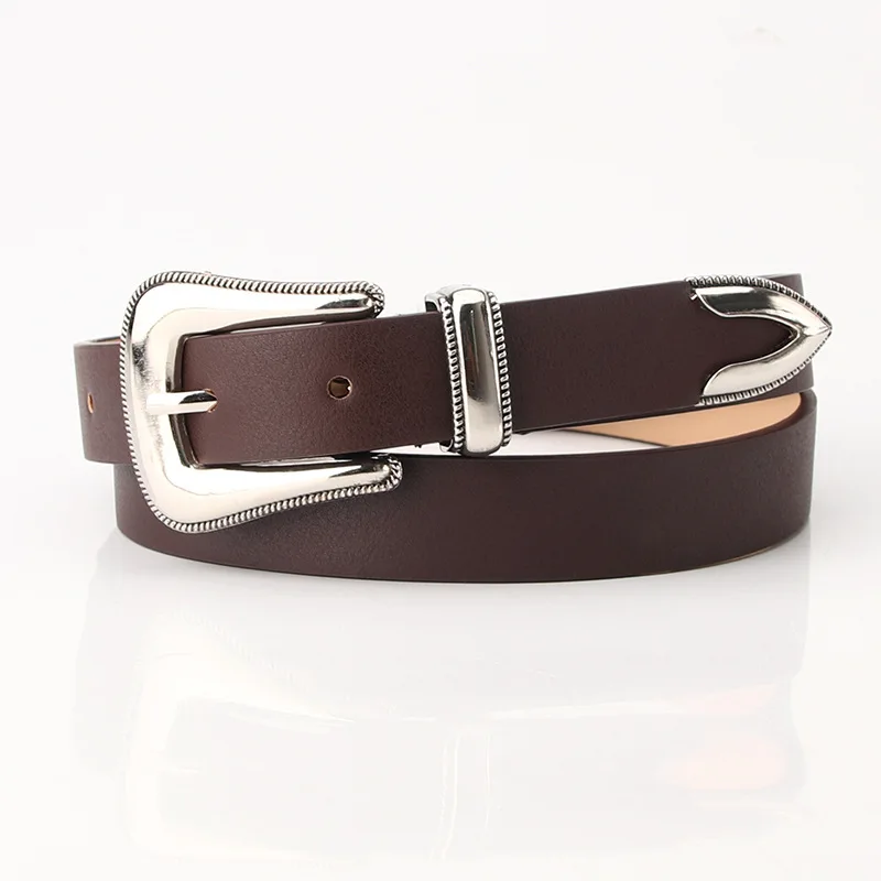 Женский винтажный ремень из искусственной кожи, Серебряная Пряжка, черный кофе, панк-стиль