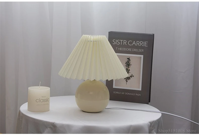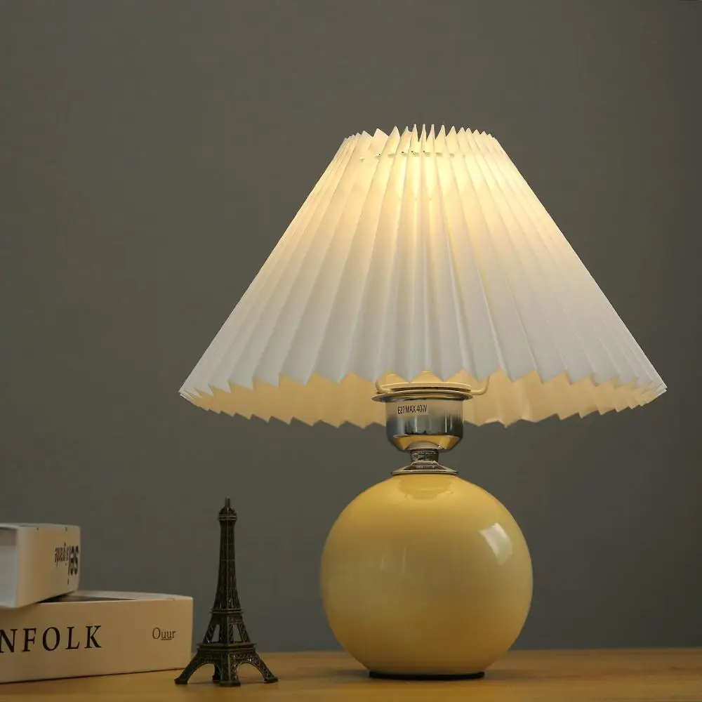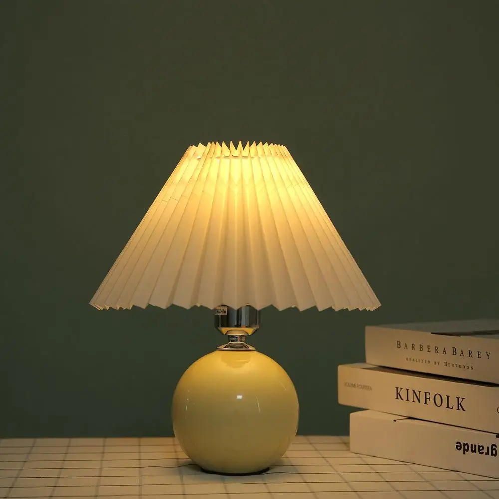 Простые керамические настольные лампы прикроватная лампа для спальни рассесветильник свет плиссированная юбка абажур домашний арт-деко светильник s тумбочка освещение