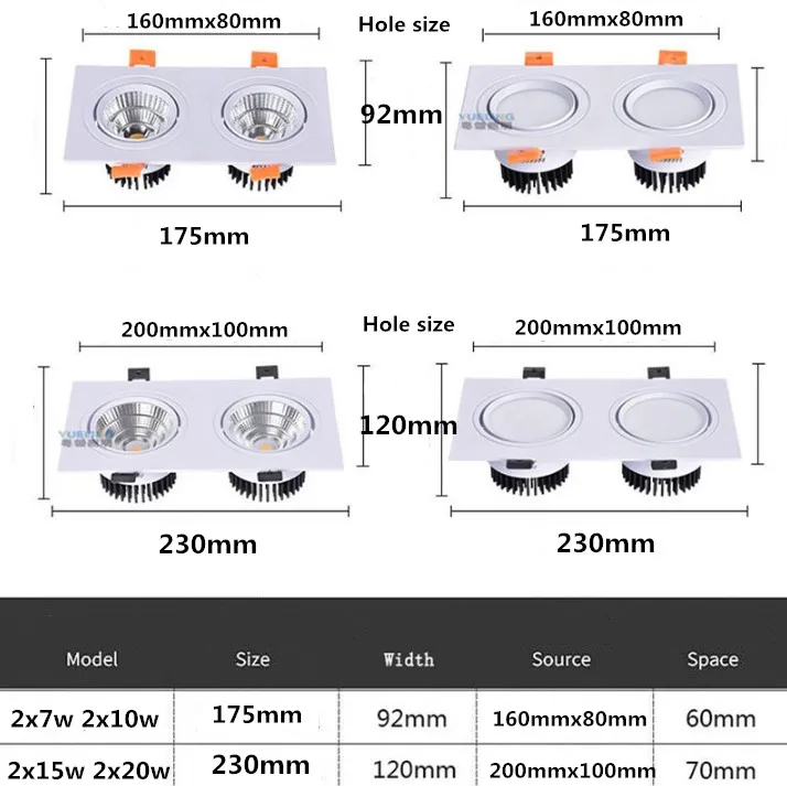 Приглушаемая двойная AC85V-265V 2x7 Вт 2x9 Вт 2x12 Вт 15 Вт потолочный Epistar Светодиодная лампа Встраиваемый Точечный светильник для домашнего освещения