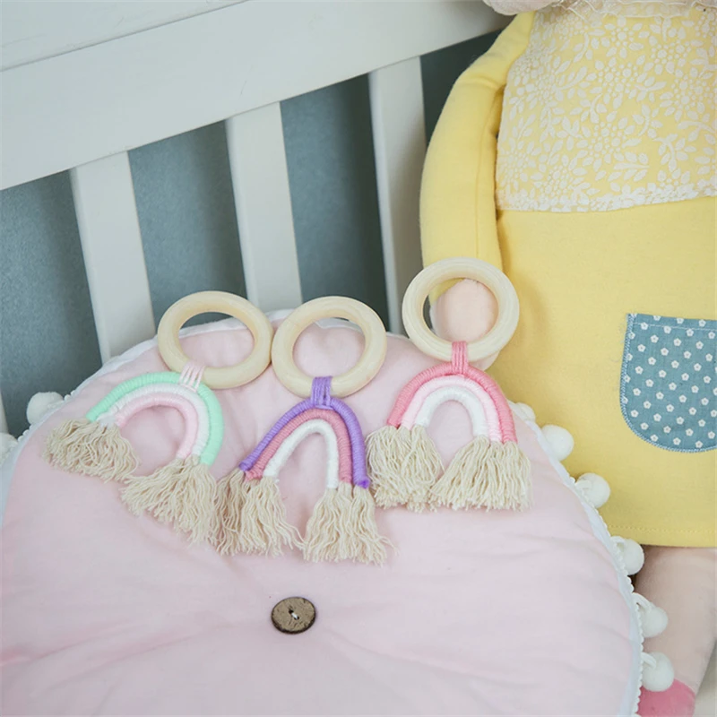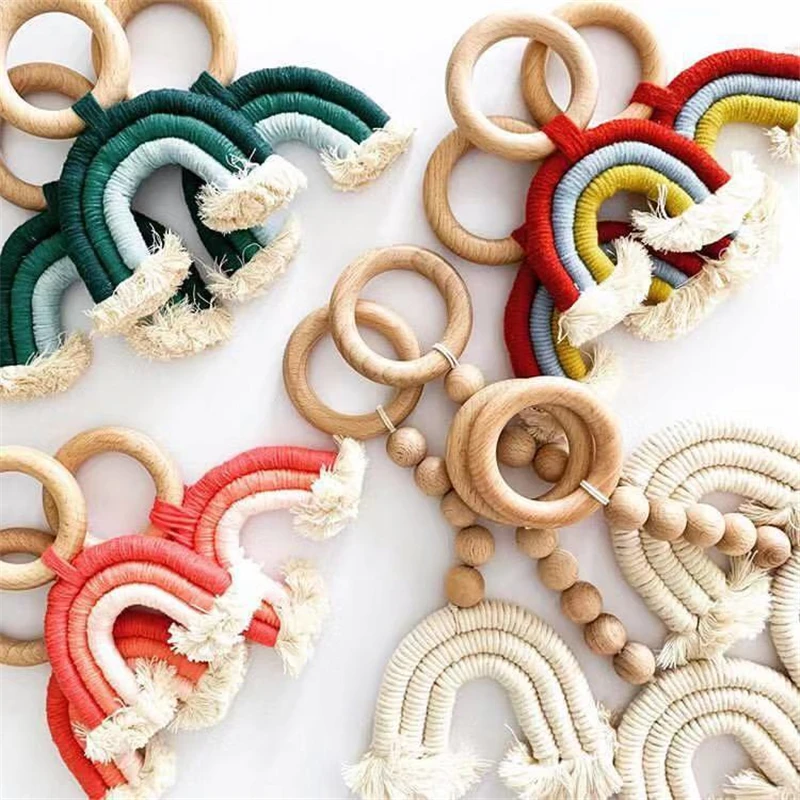 Для детей с рисунком радуги, игрушки-прорезыватели деревянные кольца Бохо Детские погремушка-грызунок коляска игрушки деревянные детские развивающие детские игрушки для малышей на возраст от 0 до 12 месяцев, подарок