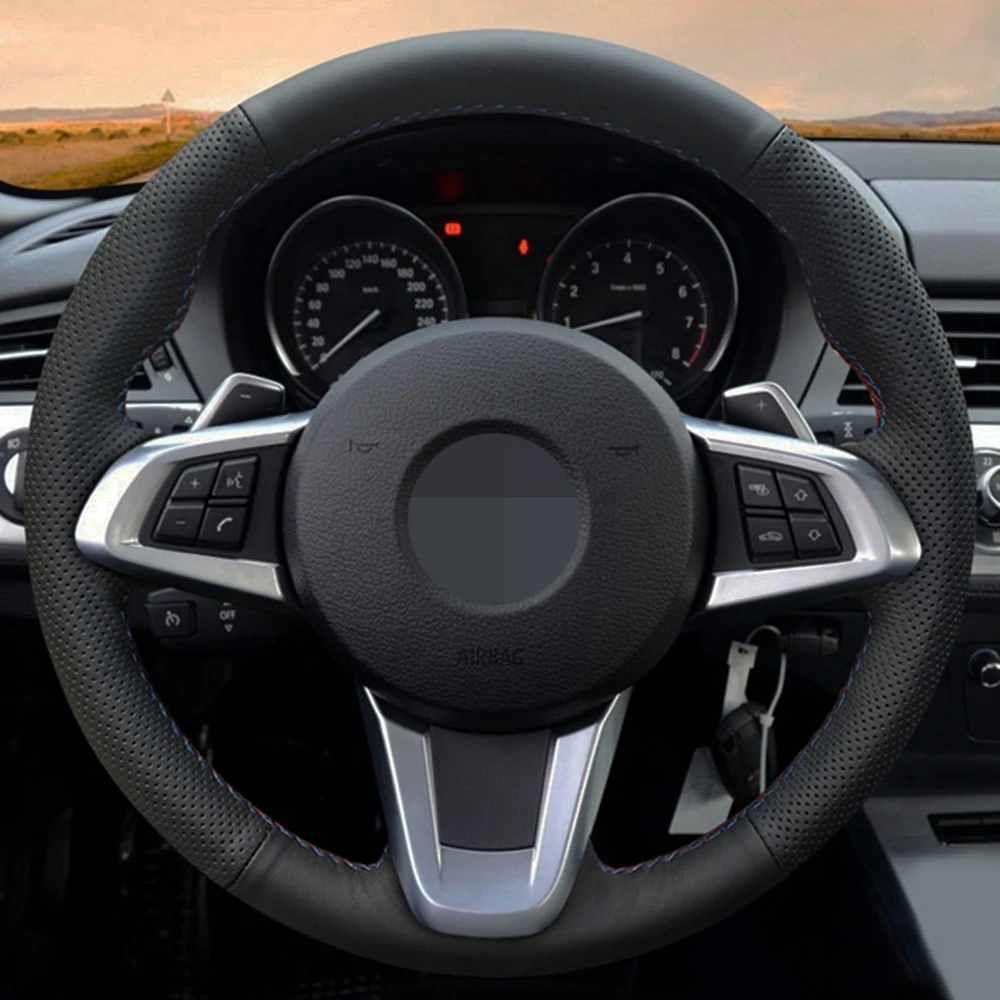 Чехол рулевого колеса автомобиля DIY ручной работы Черная мягкая искусственная кожа для BMW Z4 E89 2009-2016
