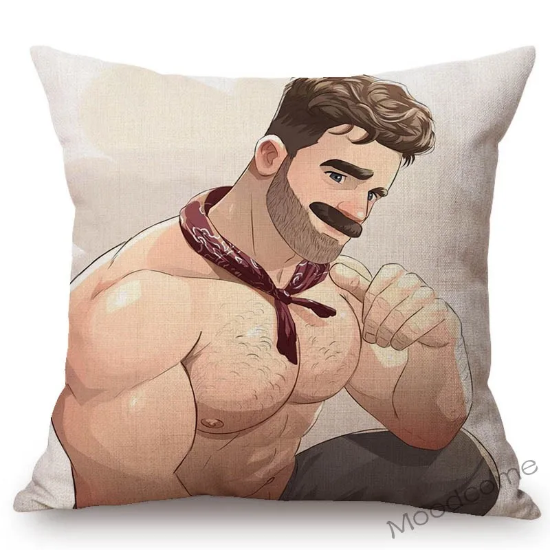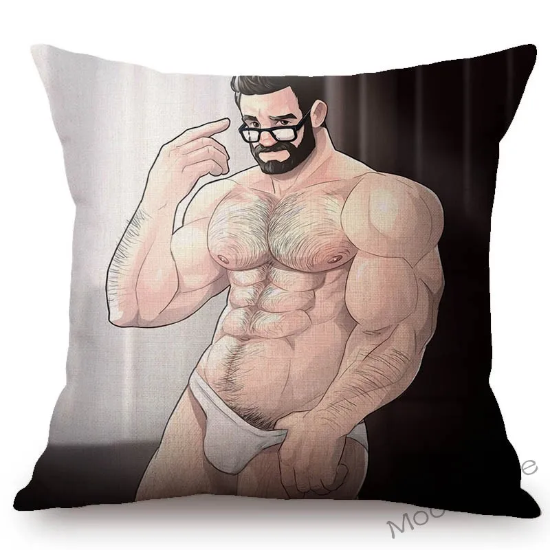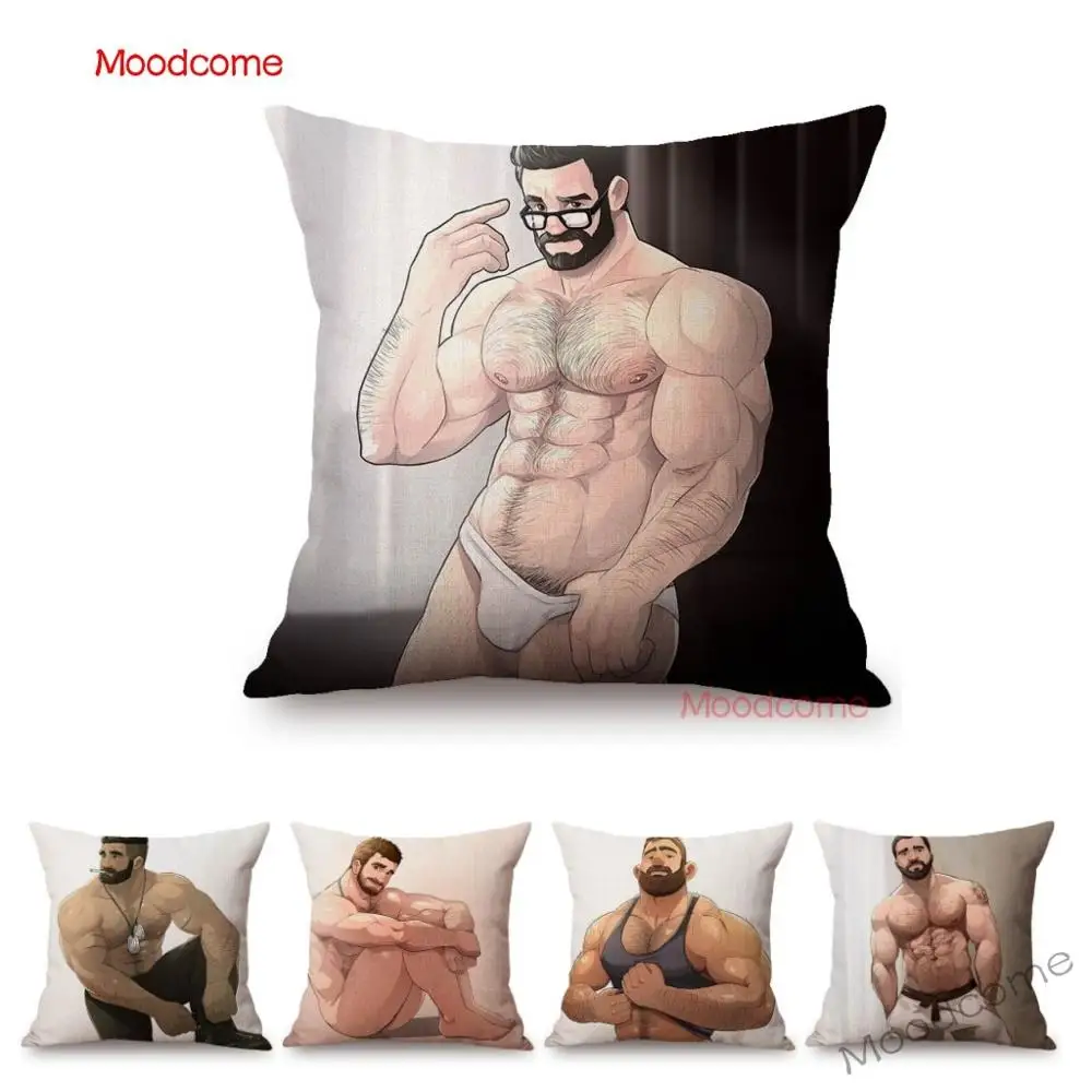 Популярный Сексуальный художественный Джок мышцы медведь Мультяшные эскизы милый уютный гордость домашнее украшение диванная Подушка Чехол из хлопка и льна наволочка