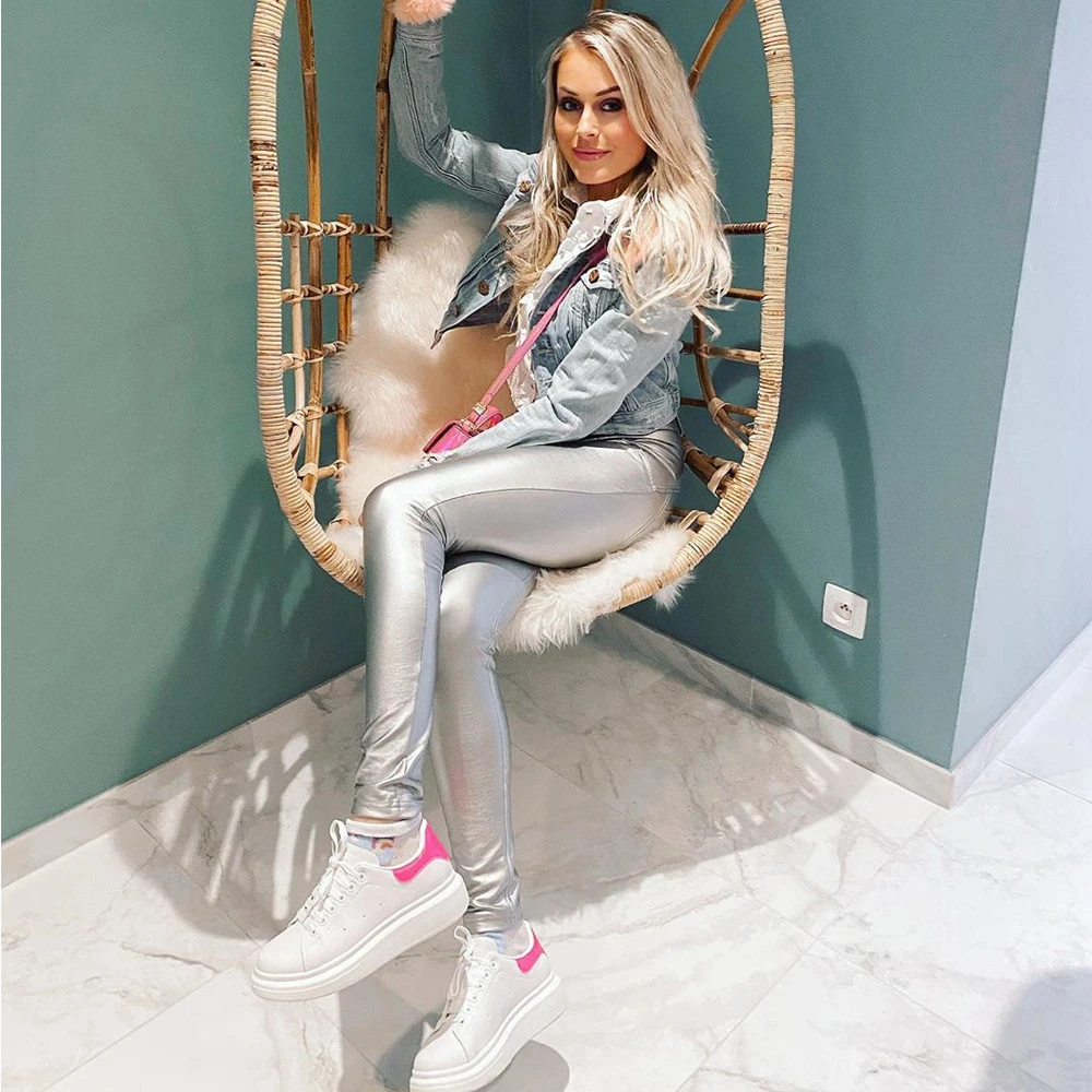 Женские спортивные штаны Melody, экокожа, леггинсы облегающие, пуш-ап, для бега, компрессионные штаны, спортивные Леггинсы